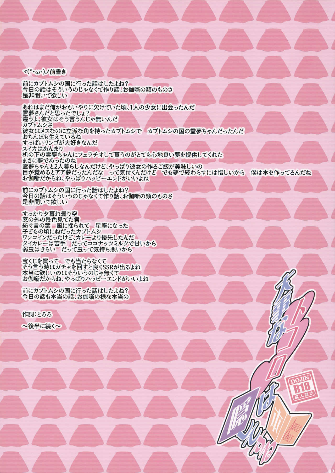 (C93) [とりあえず(仮) (とろろ)] 大事なトコロは隠してする本 (東方Project)Report (C93) [Toriaezu(kari) (Tororo)] Daiji na Tokoro wa Kakushite Suru Hon (Touhou Project)