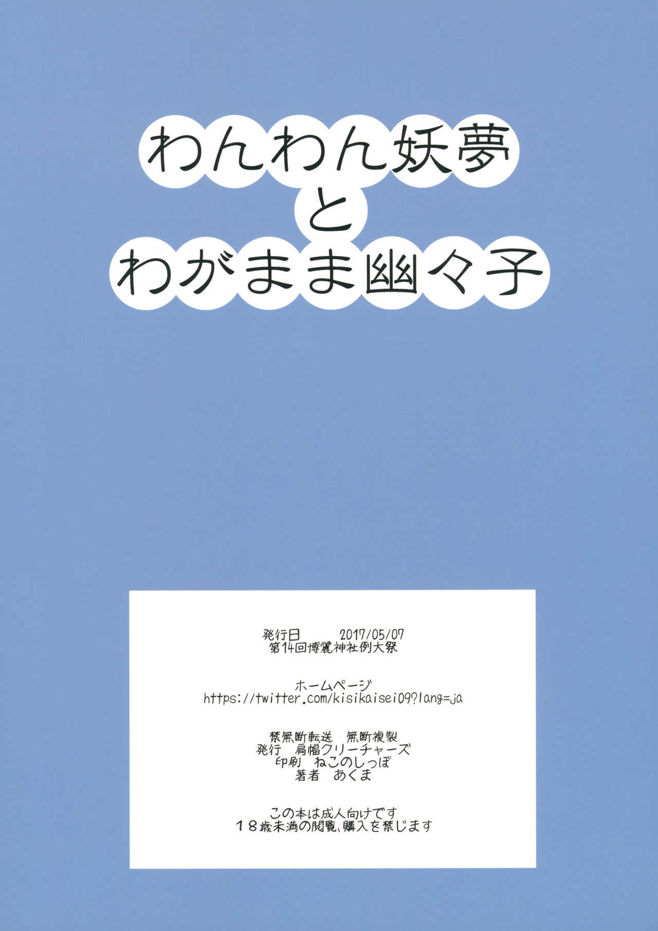 (例大祭14) [肩幅クリーチャーズ (あくま)] わんわん妖夢とわがまま幽々子 (東方Project)