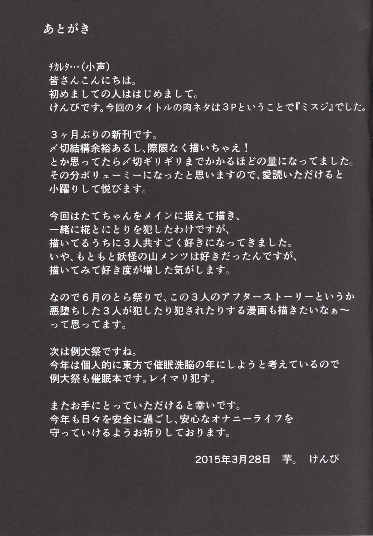 [芋。 (けんぴ)] 三筋 (東方Project) [英訳] [DL版]