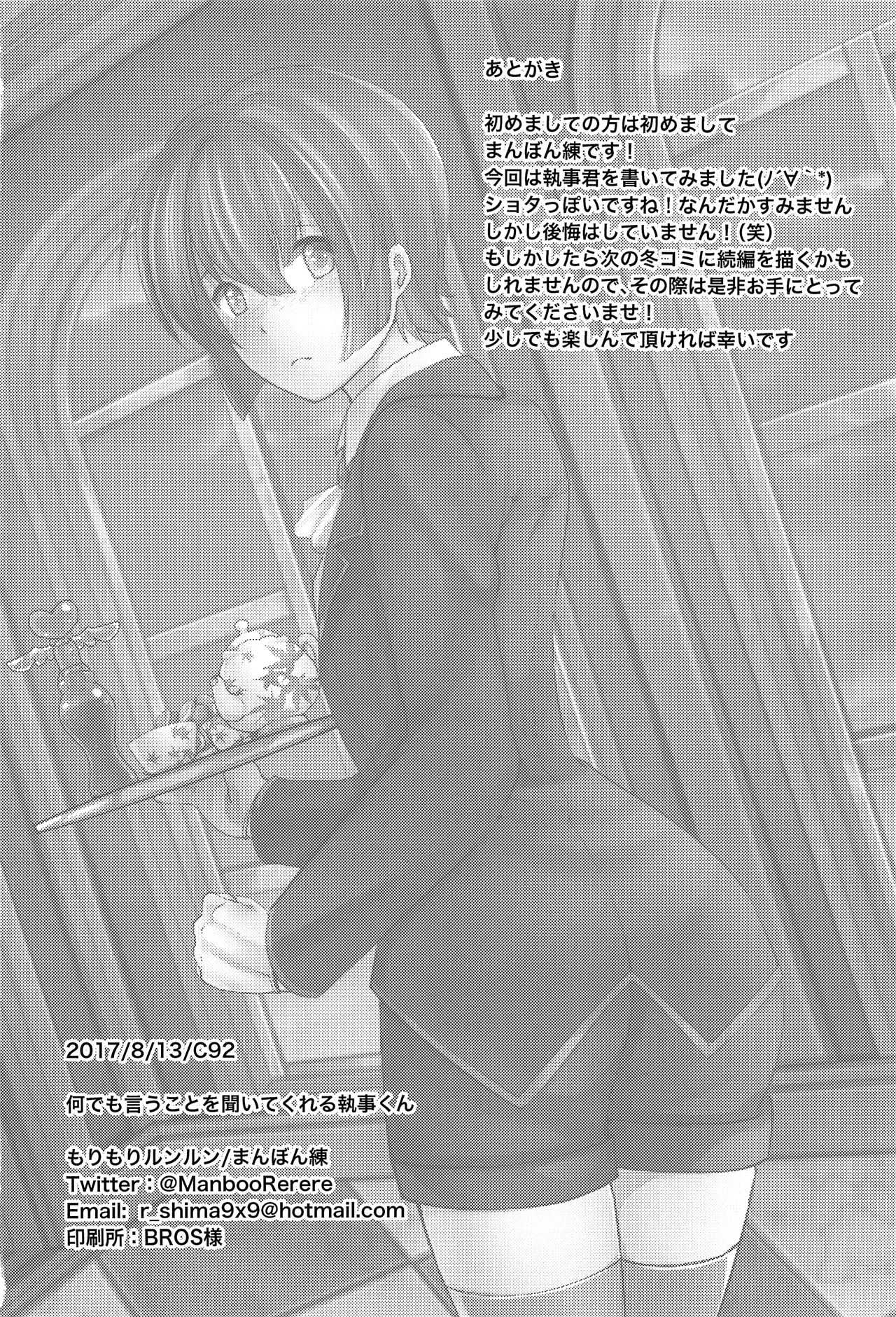 (C92) [もりもりルンルン (まんぼん練)] 何でも言う事聞いてくれる執事くんReport (C92) [Morimori Runrun (ManbooRerere)] Nani demo iu koto kiite kureru shitsuji-kun