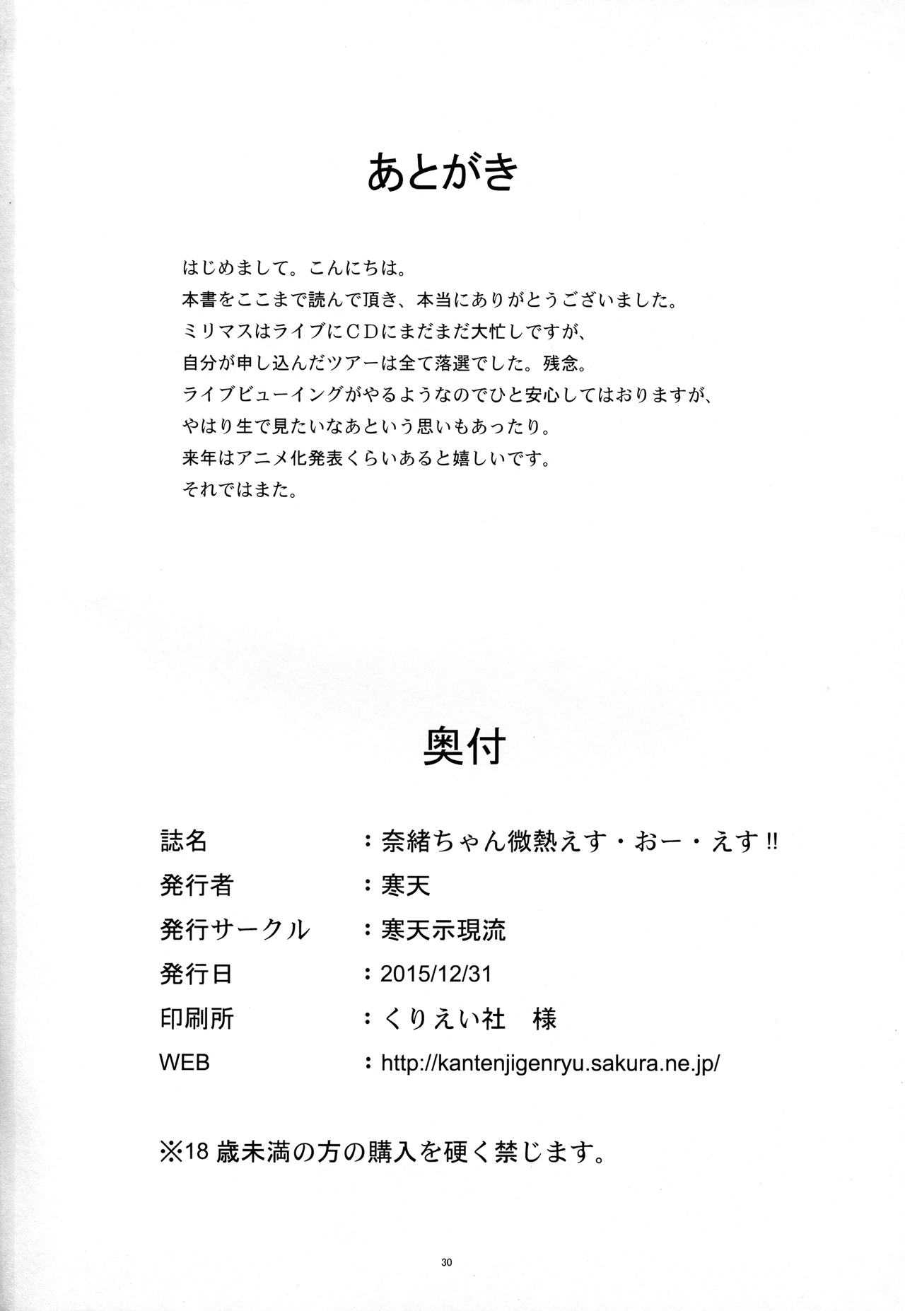 (C89) [寒天示現流 (寒天)] 奈緒ちゃん微熱えす・おー・えす!! (アイドルマスター ミリオンライブ!)