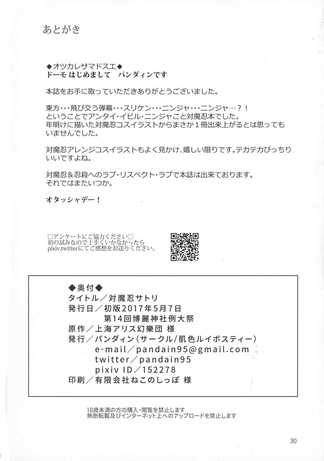 (例大祭14) [肌色ルイボスティー (パンダィン)] 対魔忍サトリ (東方Project) [中国翻訳]