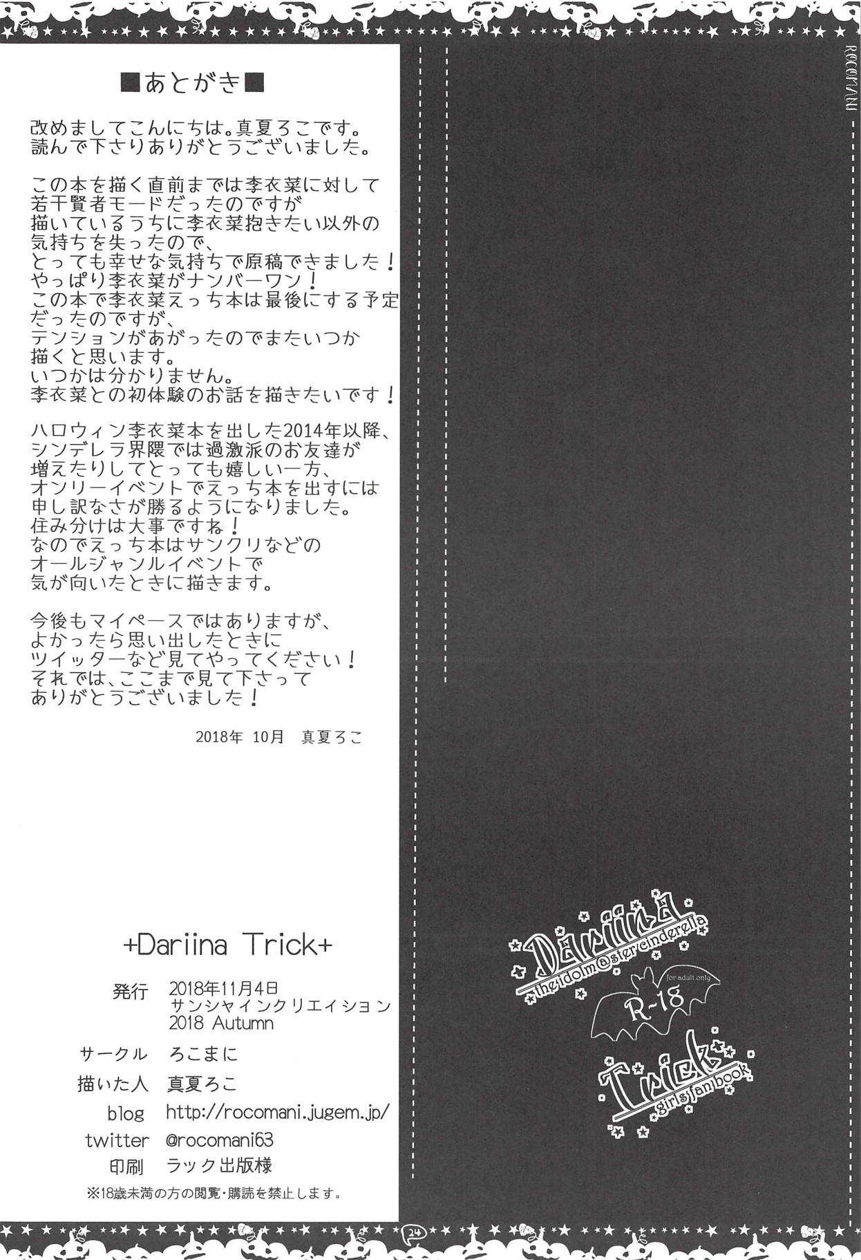 (サンクリ2018 Autumn) [ろこまに (真夏ろこ)] +Dariina Trick+ (アイドルマスター シンデレラガールズ)Report (SC2018 Autumn) [Rocomani (Manatsu Roco)] +Dariina Trick+ (THE IDOLM@STER CINDERELLA GIRLS)