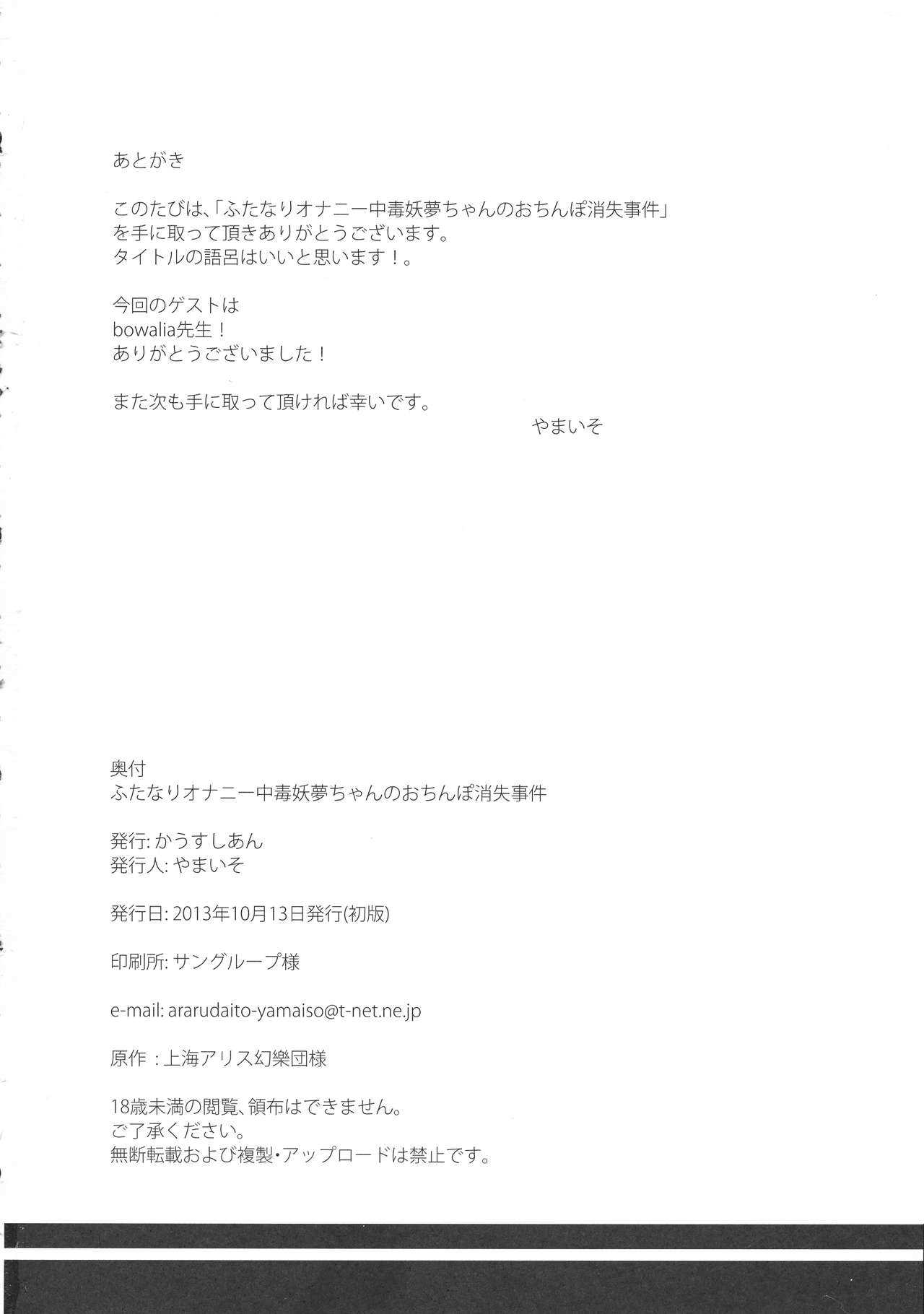 (紅楼夢 09) [かうすしあん (bowalia, やまいそ)] ふたなりオナニー中毒妖夢ちゃんのおちんぽ消失事件 (東方Project)Report (Kouroumu 09) [CausCiant (bowalia, Yamaiso)] Futanari Onanie Chuudoku Youmu-chan Shoushitsu Jiken (Touhou Project)