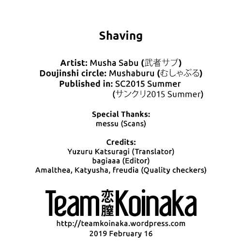 (サンクリ2015 Summer) [むしゃぶる (武者サブ)] Shaving [英訳]Report (SC2015 Summer) [Mushaburu (Musha Sabu)] Shaving [English] [Team Koinaka]