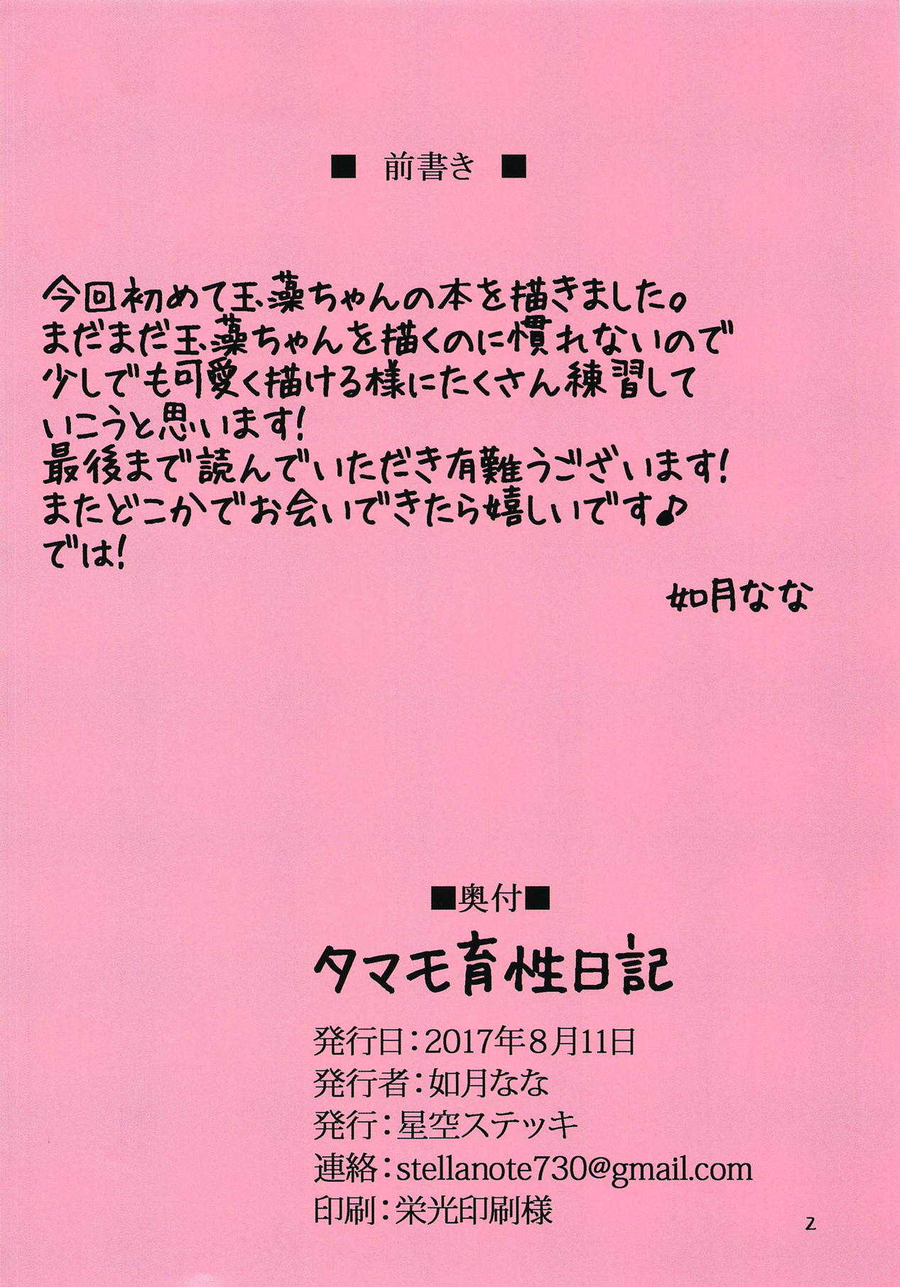 (C92) [星空ステッキ (如月なな)] タマモ育性日記 (Fate/Grand Order)