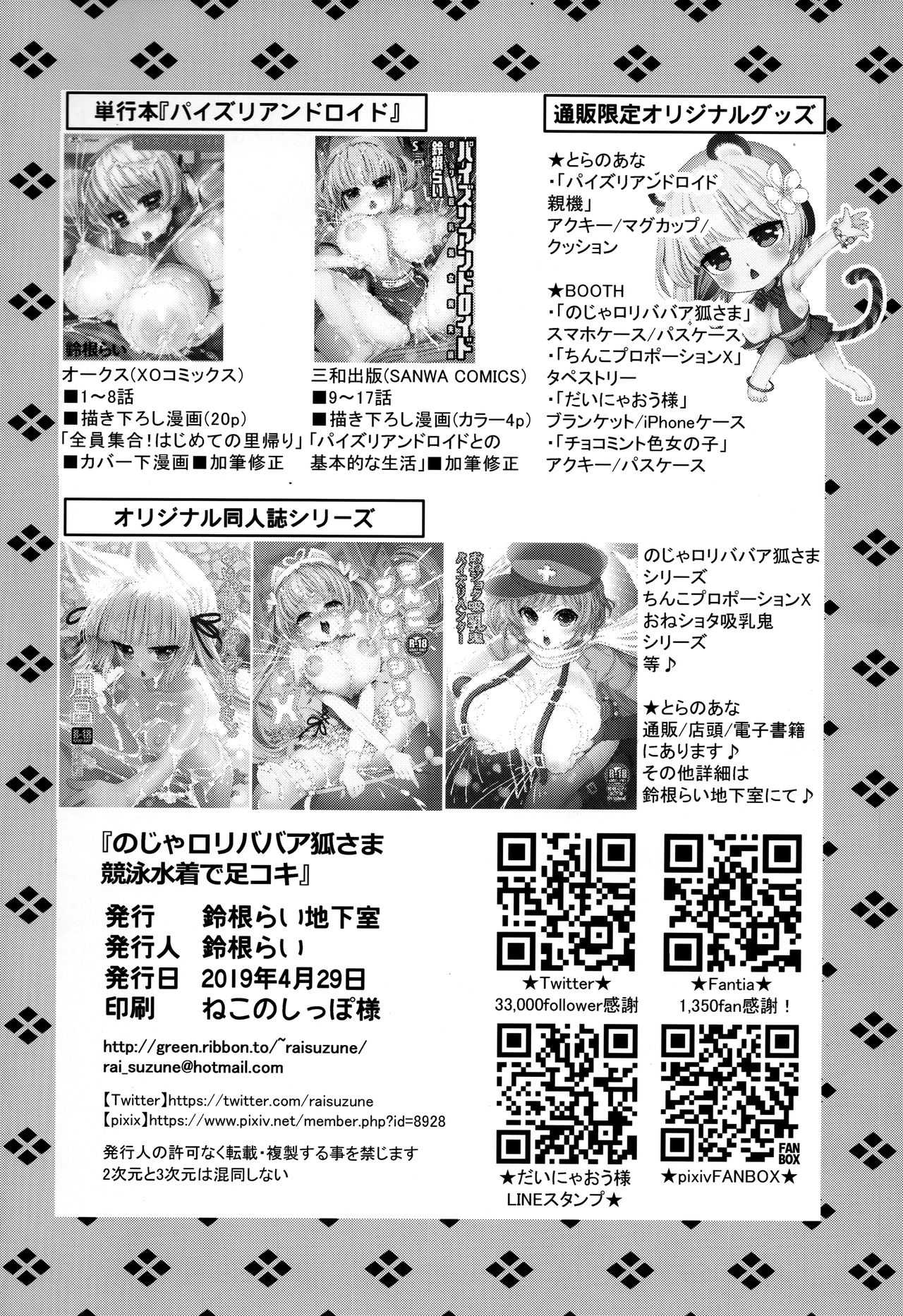 (COMIC1☆15) [鈴根らい地下室 (鈴根らい)] のじゃロリババア狐さま 競泳水着で足コキReport (COMIC1☆15) [Suzune Rai Chikashitsu (Suzune Rai)] Noja Loli Babaa Kitsune-sama Kyoeimizugi de Ashikoki