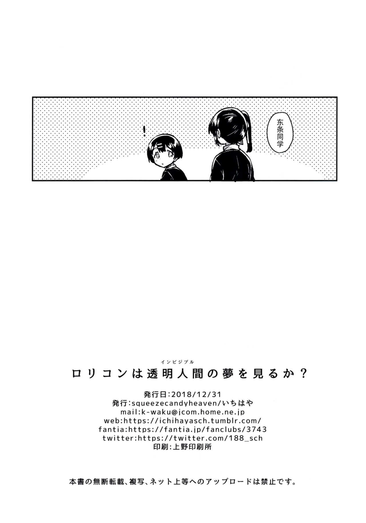(C95) [squeezecandyheaven (いちはや)] ロリコンは透明人間の夢を見るか? [中国翻訳]