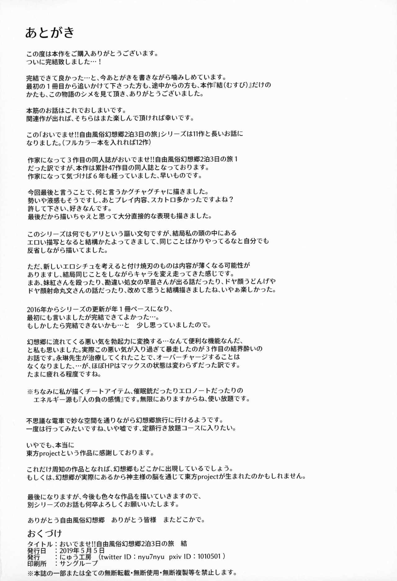 (例大祭16) [にゅう工房 (にゅう)] おいでませ!!自由風俗幻想郷2泊3日の旅 結 (東方Project)