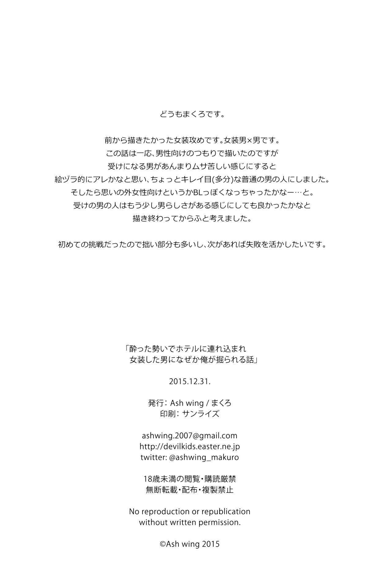 (C89) [Ash Wing (まくろ)] 酔った勢いでホテルに連れ込まれ女装した男になぜか俺が掘られる話 [中国翻訳]Report (C89) [Ash Wing (Makuro)] Yotta Ikioi de Hotel ni Tsurekomare Josou Shita Otoko ni Nazeka Ore ga Horareru Hanashi [Chinese] [EZR個人漢化]