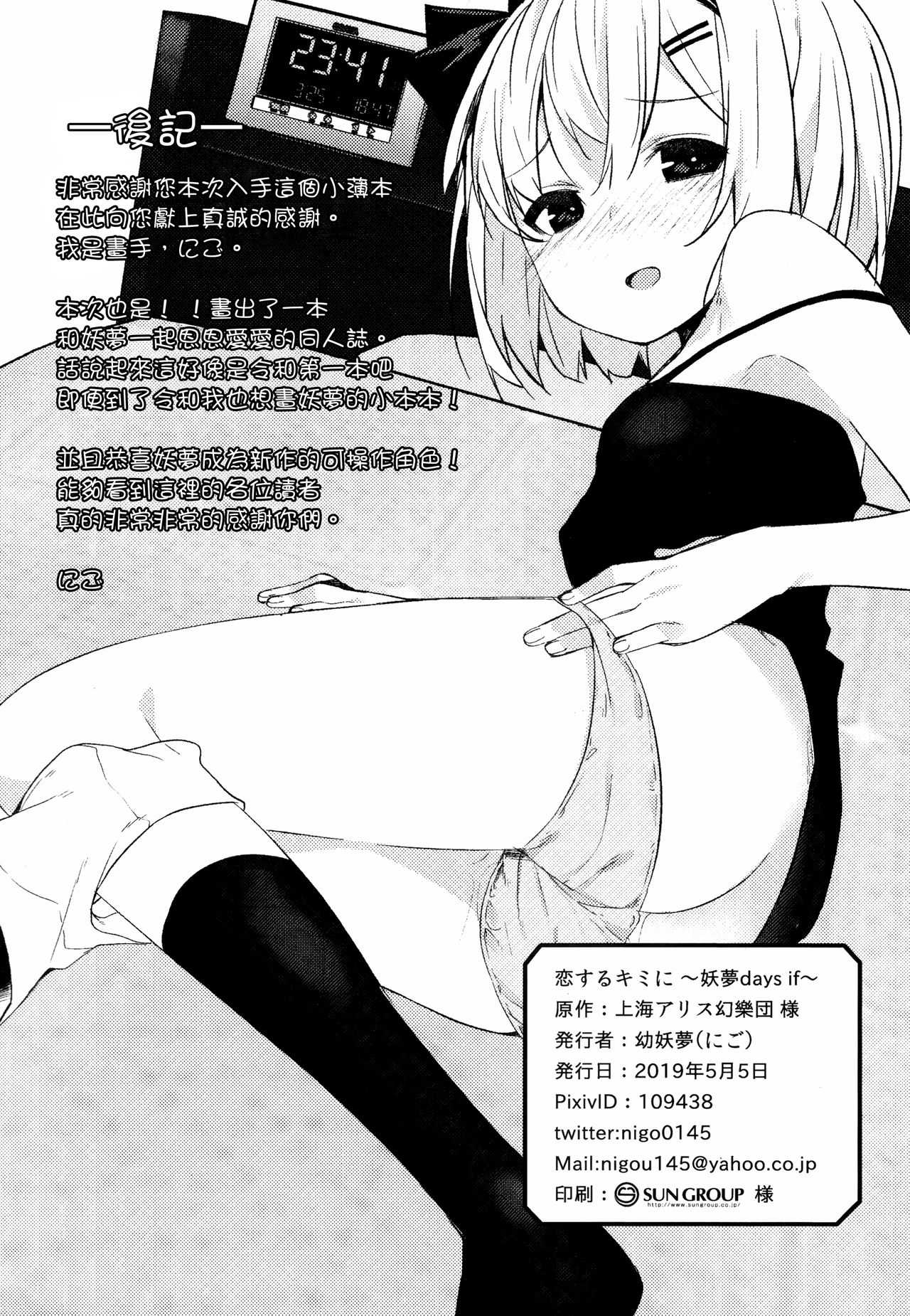 (例大祭16) [妖幼夢 (にご)] 恋するキミに ~妖夢days if~ (東方Project) [中国翻訳]Report (Reitaisai 16) [Youyoumu (Nigo)] Koi Suru Kimi ni ~Youmu days if~ (Touhou Project) [Chinese] [CE家族社]