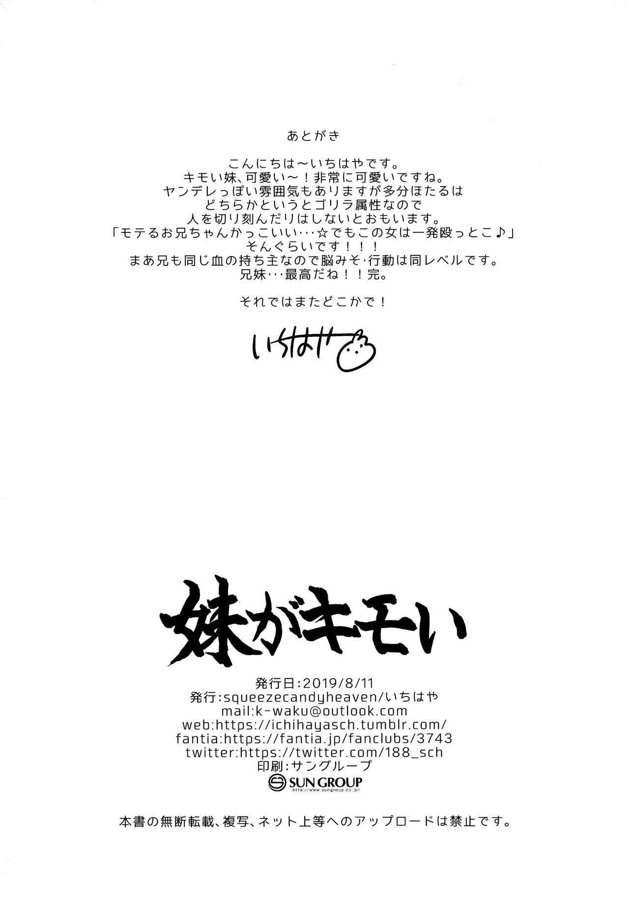 (C96) [squeezecandyheaven (いちはや)] 妹がキモい [中国翻訳]Report (C96) [squeezecandyheaven (Ichihaya)] Imouto ga Kimoi [Chinese] [脸肿汉化组]