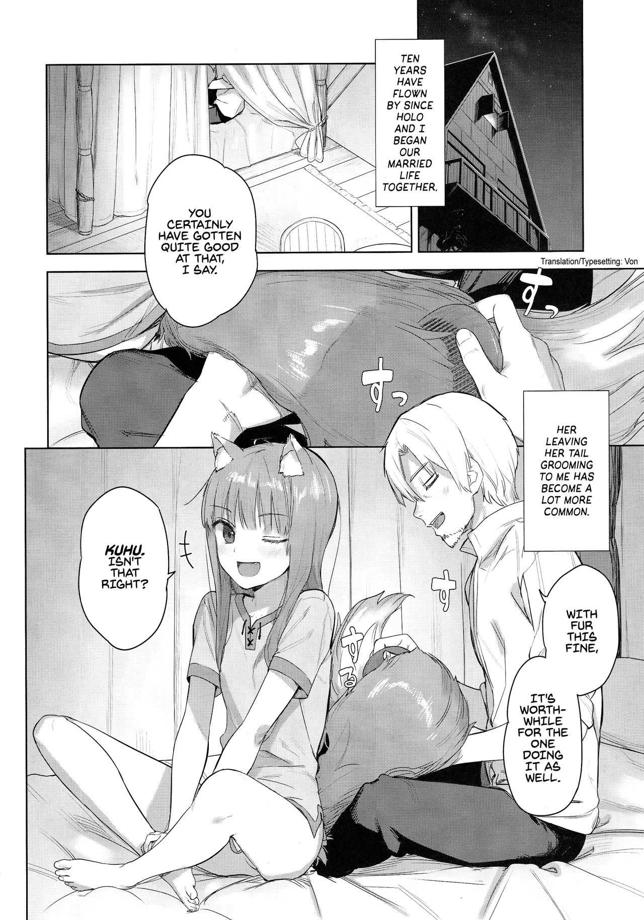 (C96) [アジサイデンデン (川上六角、小鳥遊レイ)] わっちとしっぽり毛づくろい本 (狼と香辛料) [英訳]Report (C96) [Ajisaidenden (Kawakami Rokkaku, Takanashi Rei)] Wacchi to Shippori Kezukuroi Bon | Affectionate Grooming With Me (Spice and Wolf) [English] [Von]