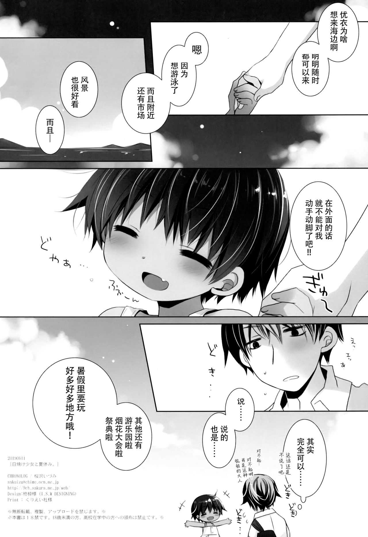 (C96) [CHRONOLOG (桜沢いづみ)] 日焼け少女と夏休み。 [中国翻訳]Report (C96) [CHRONOLOG (Sakurazawa Izumi)] Hiyake Shoujo to Natsuyasumi. [Chinese] [脸肿汉化组]