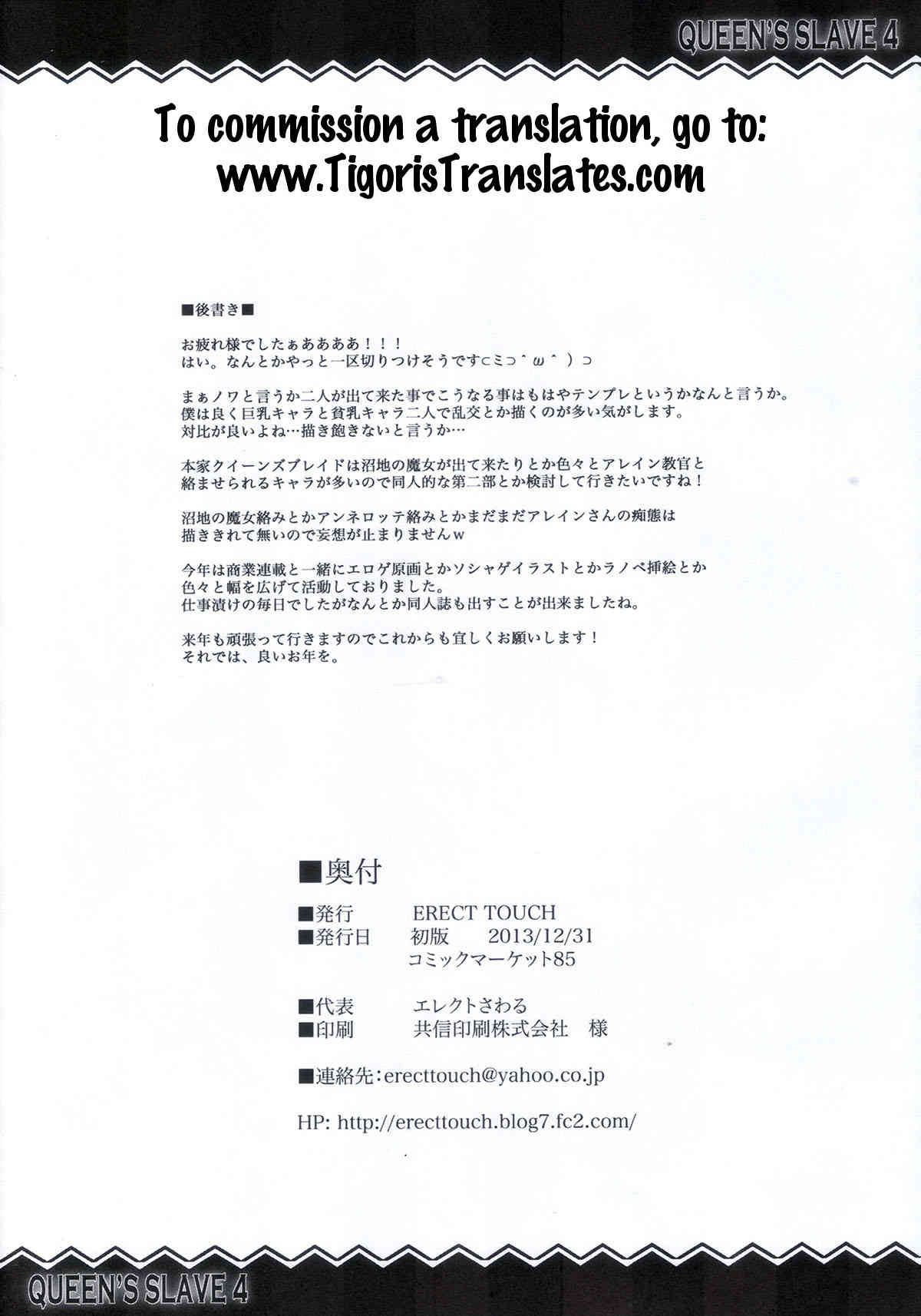 (C85) [ERECT TOUCH (エレクトさわる)] QUEEN'S SLAVE 4 (クイーンズブレイド) [英訳]