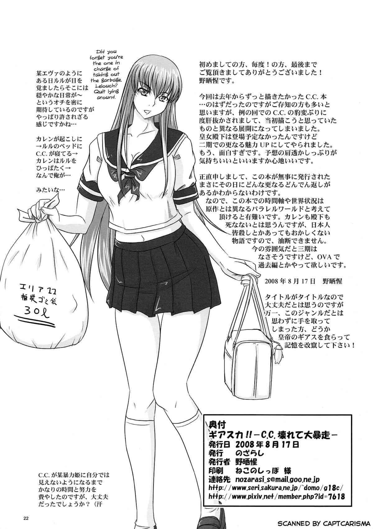 (C74) [のざらし (野晒惺)] ギアスカ!! -C.C.壊れて大暴走- (コードギアス) [英訳]Report (C74) [Nozarashi (Satoru Nozarashi)] Geassca!! -Crazy C.C. Goes on a Rampage- (Code Geass) [English] [Chocolate + LWB]