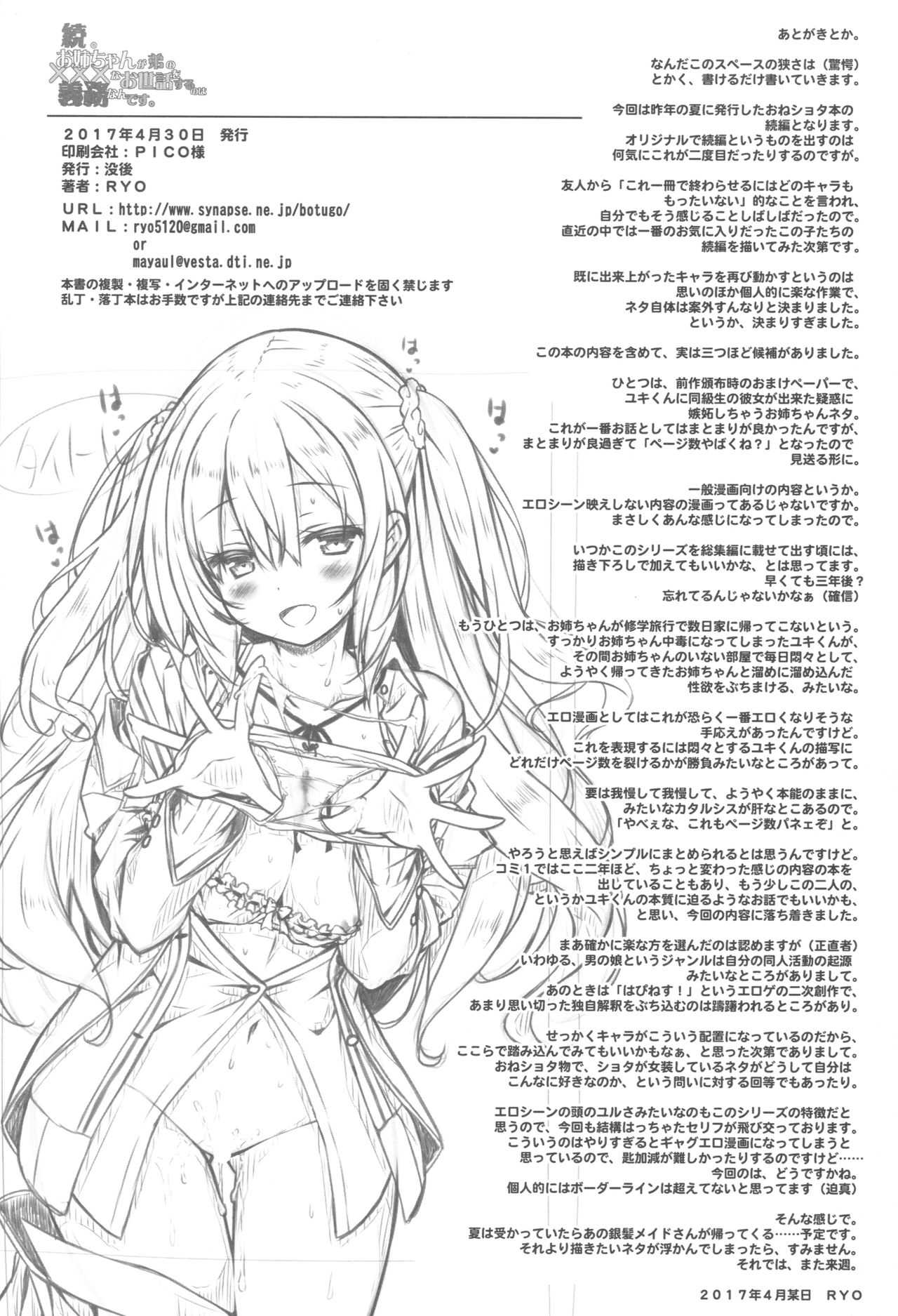 (COMIC1☆11) [没後 (RYO)] 続。お姉ちゃんが弟のxxxなお世話をするのは義務なんです。 [英訳]Report (COMIC1☆11) [Botugo (RYO)] Zoku. Onee-chan ga Otouto no xxx na Osewa o Suru no wa Gimu nandesu. [English] {Hennojin}