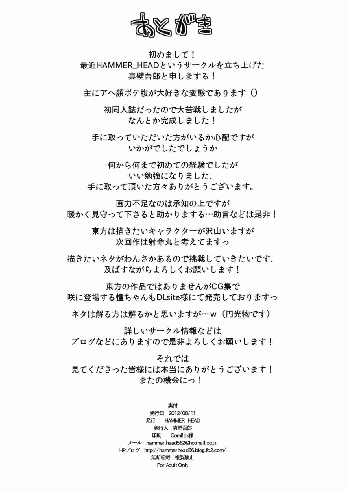 (C82) [HAMMER_HEAD (真壁吾朗)] 囚われの巫女 (東方Project)Report (C82) [HAMMER_HEAD (Makabe Gorou)] Toraware no Miko (Touhou Project)