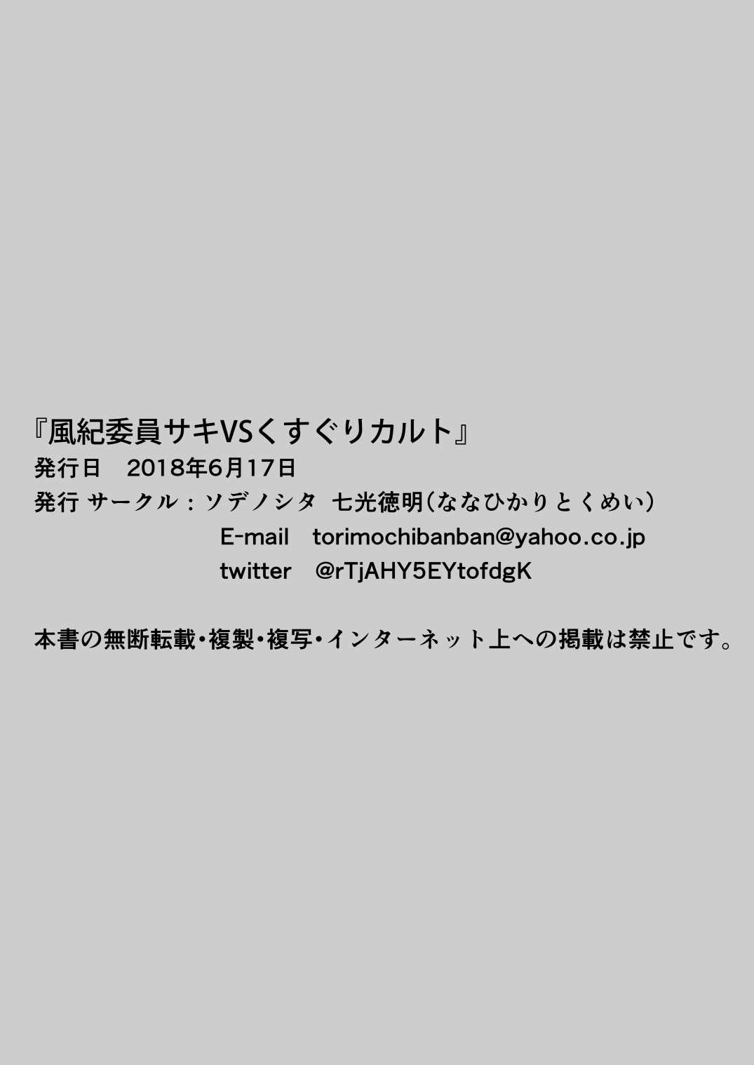 [ソデノシタ (七光徳明)] 風紀委員サキVSくすぐりカルト+おまけ [DL版]Report [Sodenoshita (Nanahikari Tokumei)] Fuuki Iin Saki vs Kusuguri Cult + Omake [Digital]