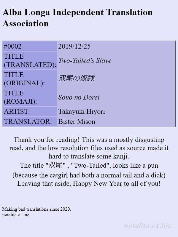 [宇行日和] 双尾の奴隷 (ふたなり♥セクロス!!) [英訳]Report [Takayuki Hiyori] Soubi no Dorei (Futanari Secrosse!!) [English] [Bister Mison]
