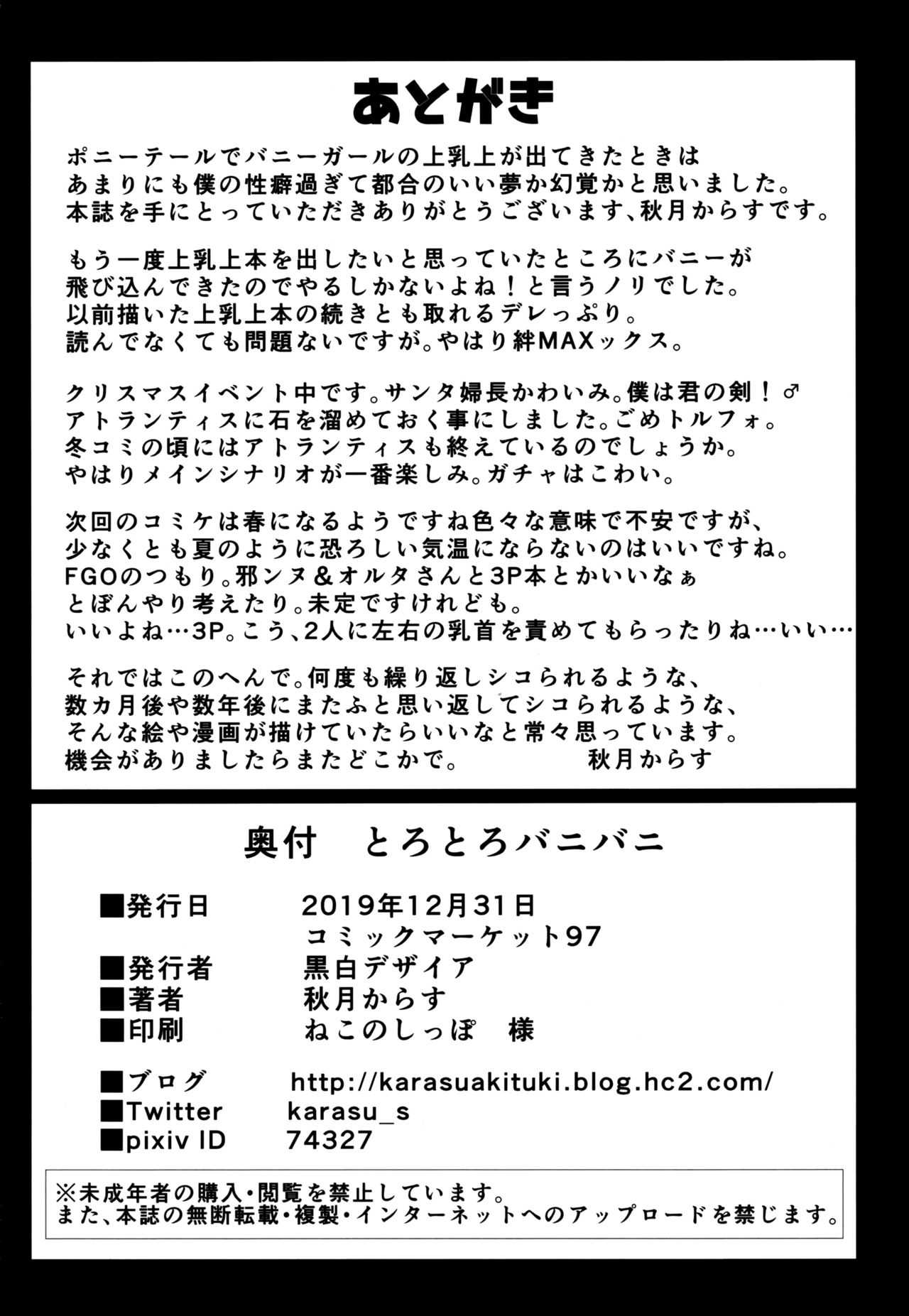 (C97) [黒白デザイア (秋月からす)] とろとろバニバニ (Fate/Grand Order)