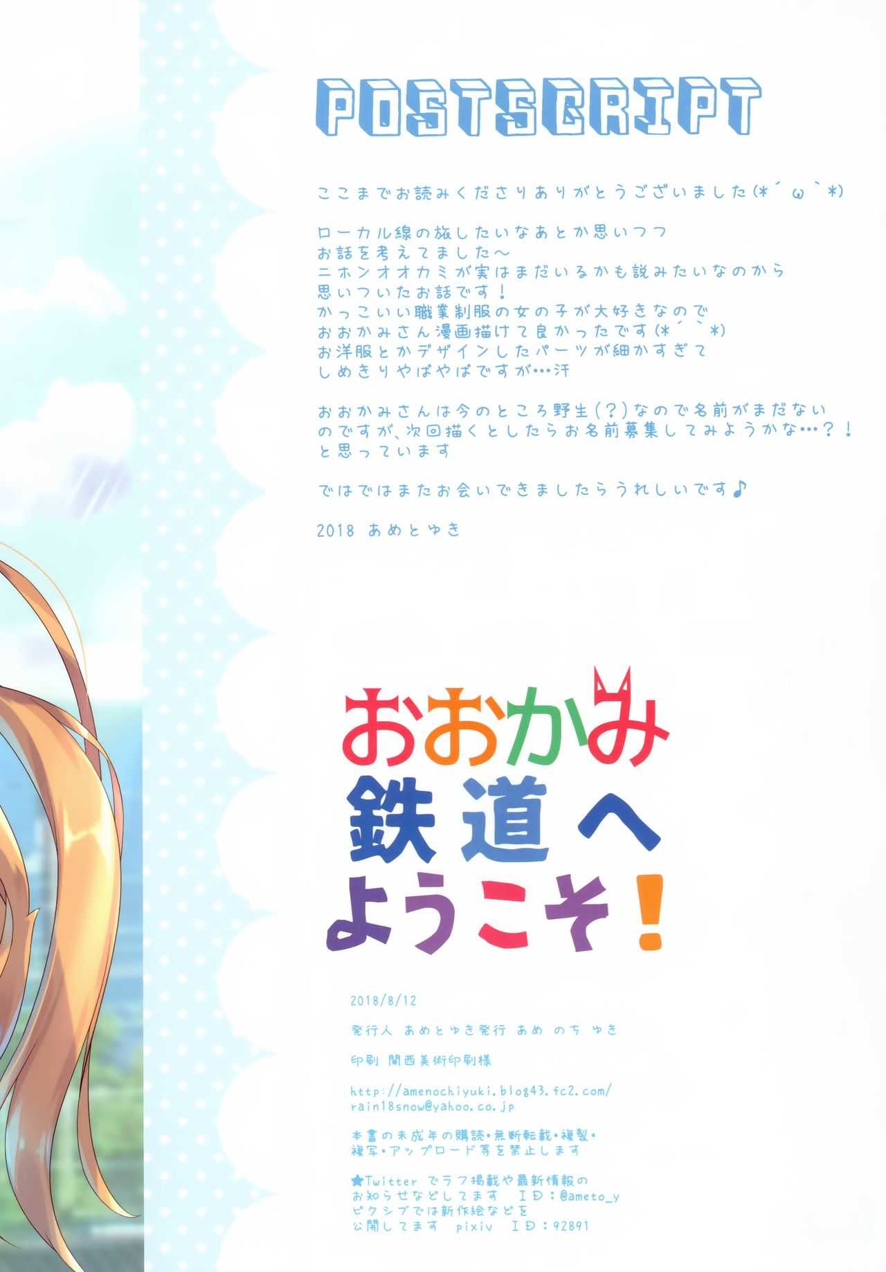 (C94) [あめ のち ゆき (あめとゆき)] おおかみ鉄道へようこそ! [英訳]