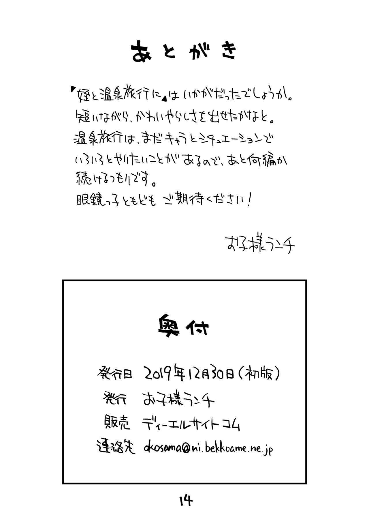 [お子様ランチ (西野沢かおり介、ひらやん)] 姪と温泉旅行に [DL版]Report [Okosama Lunch (Nishinozawa Kaorisuke, Hirayan)] Mei to Onsen Ryokou ni [Digital]