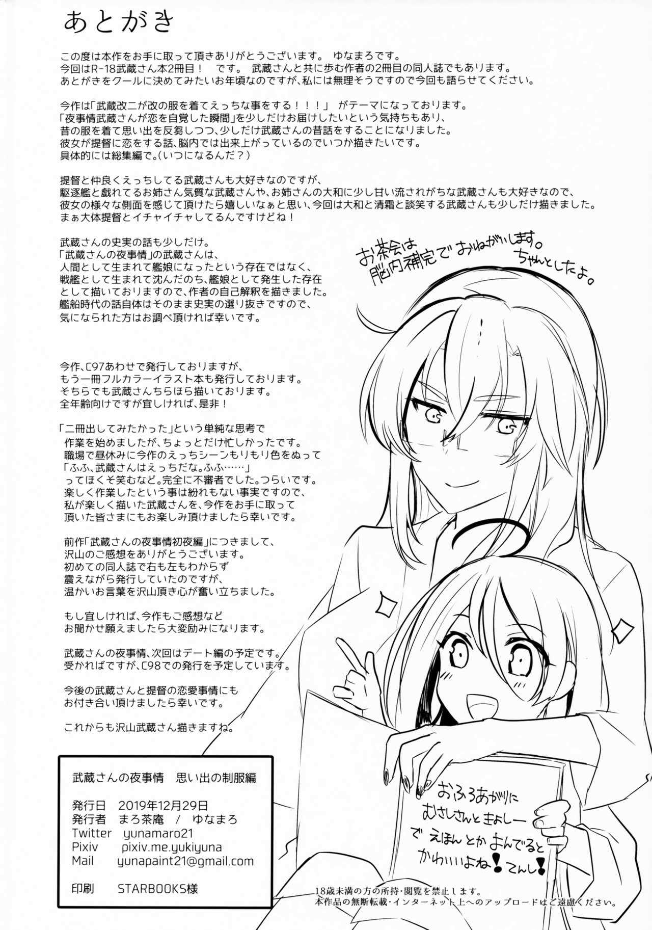 (C97) [まろ茶庵 (ゆなまろ)] 武蔵さんの夜事情 思い出の制服編 (艦隊これくしょん -艦これ-)Report (C97) [Marosaan (Yunamaro)] Musashi-san no Yoru Jijou Omoide no Seifuku Hen (Kantai Collection -KanColle-)