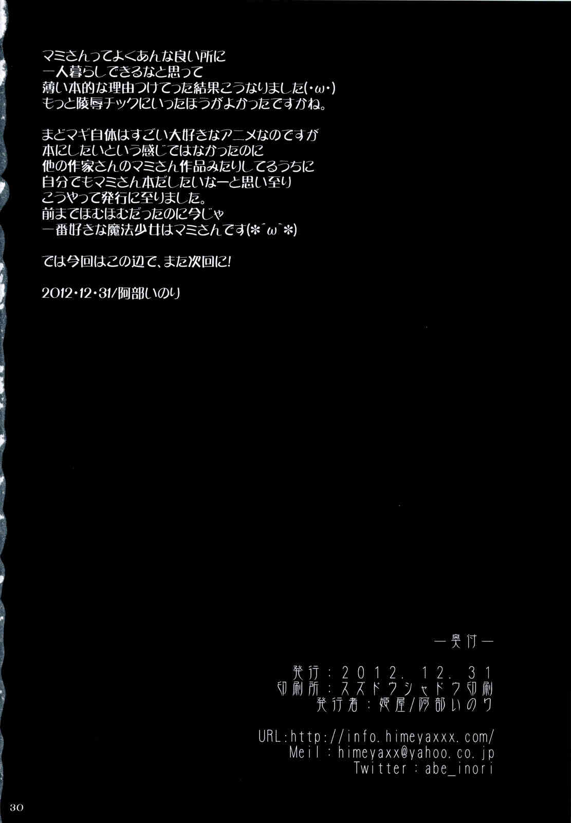 (C83) [姫屋 (阿部いのり)] 巴マミは魔女である (魔法少女まどか☆マギカ) [英訳]Report (C83) [Himeya (Abe Inori)] Tomoe Mami wa Majo dearu (Puella Magi Madoka Magica) [English] [CGrascal]