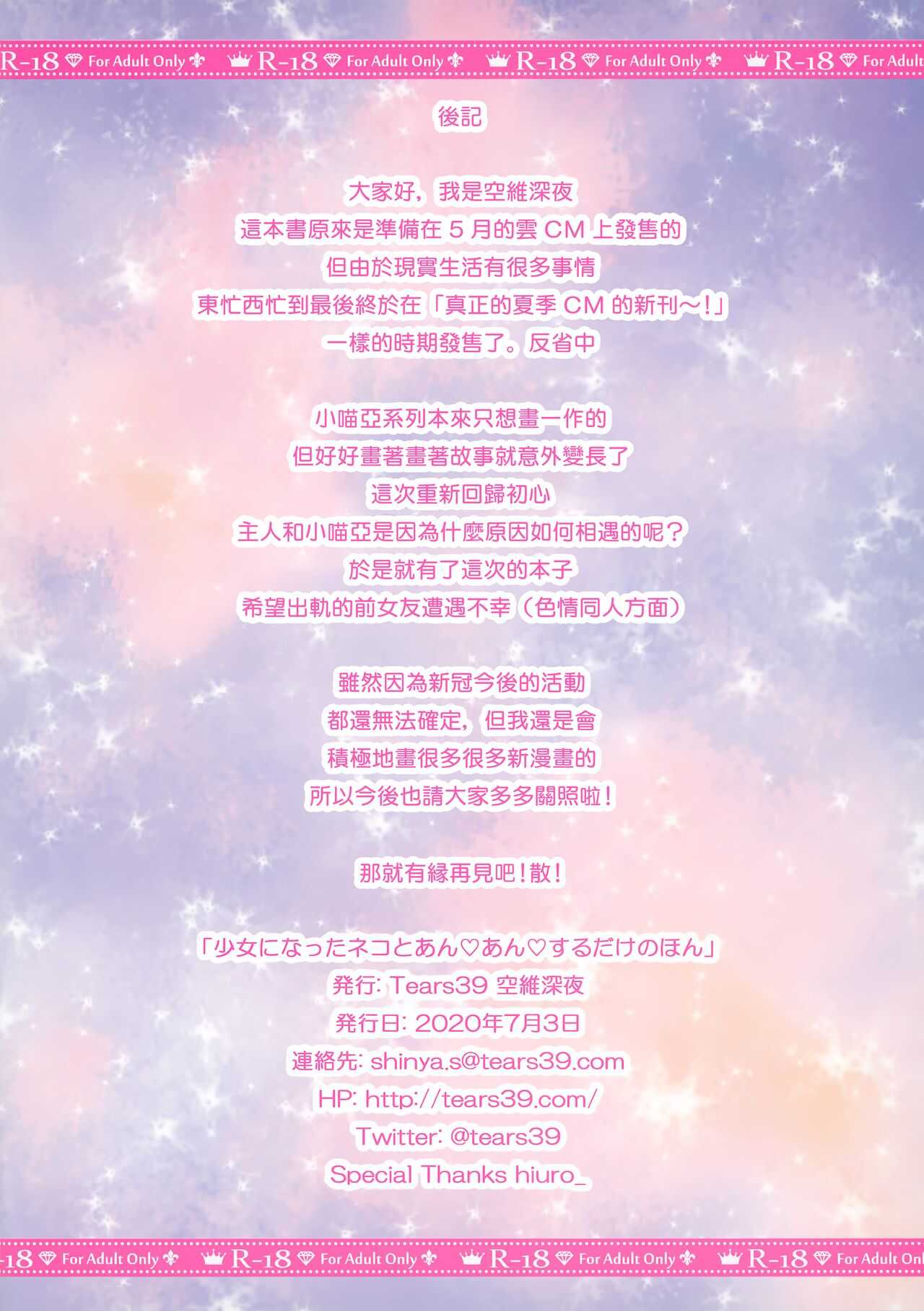 [Tears39 (空維深夜)] 少女になったネコとあん♡あん♡するだけのほん [中国翻訳]Report [Tears39 (Sorai Shinya)] Shoujo ni Natta Neko to An-An Suru dake no Hon [Chinese] [兔司姬漢化組]