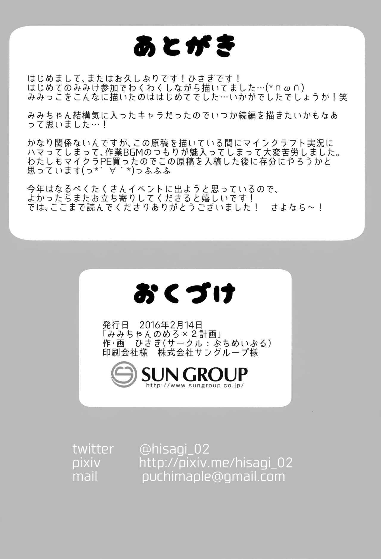 (みみけっと34) [ぷちめいぷる (ひさぎ)] みみちゃんのめろ×2計画 [中国翻訳]Report (Mimiket 34) [Puchimaple (Hisagi)] Mimi-chan no Mero x2 Keikaku [Chinese] [脸肿汉化组]