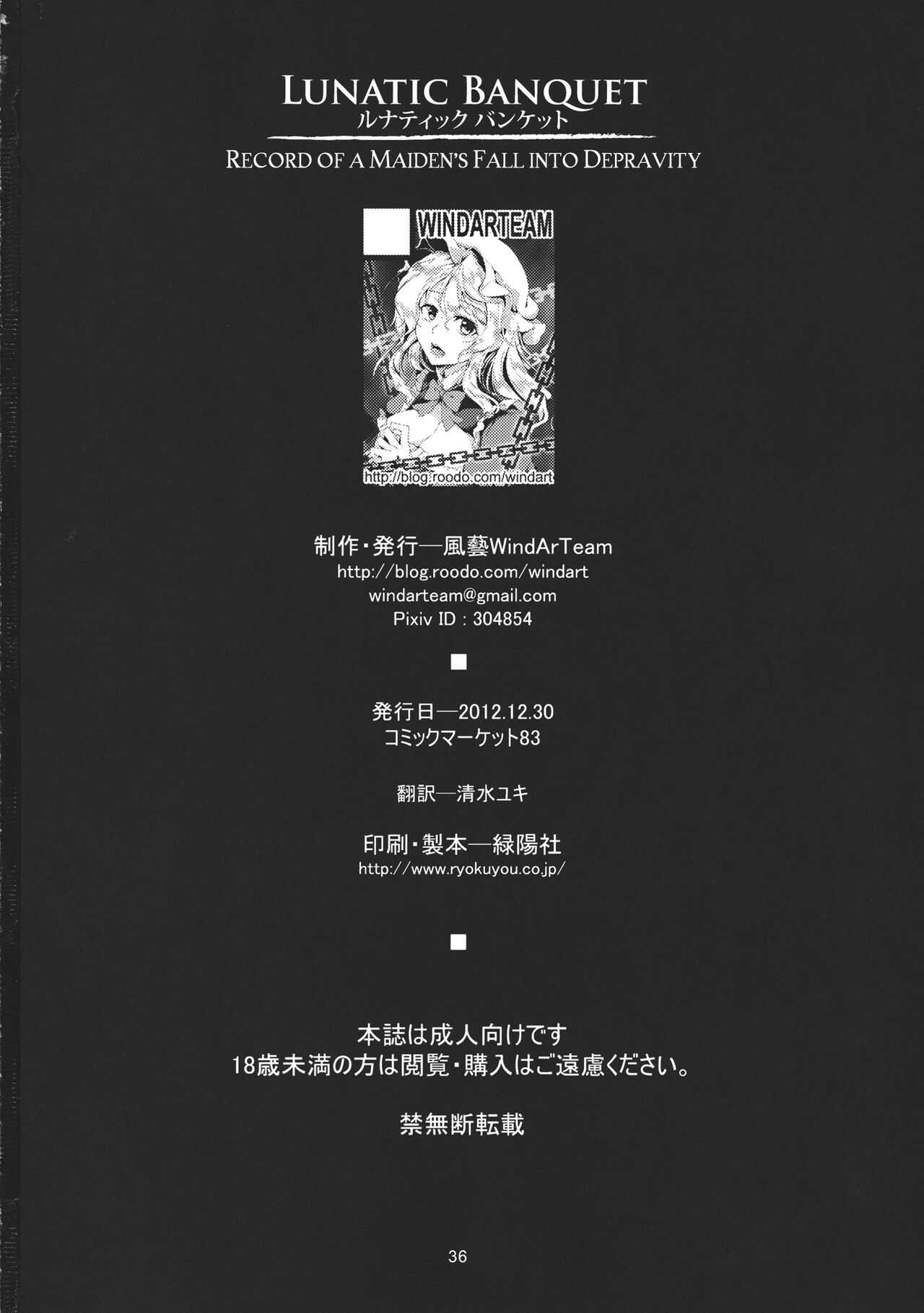 (C83) [風芸WindArTeam (WindArt)] Lunatic Banquet -少女淫堕録- (東方Project) [英訳]