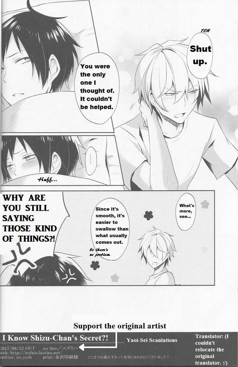 (C92) [no fate (ユズリハ)] シズちゃんの秘密を知っちゃった!? (デュラララ!!) [英訳]Report (C92) [no fate (Yuzuriha)] Shizu-chan no Himitsu o Shichatta!? | I Know Shizu-chan's Secret!? (Durarara!!) [English] {KCK Amateur, Yaoi-Sei}