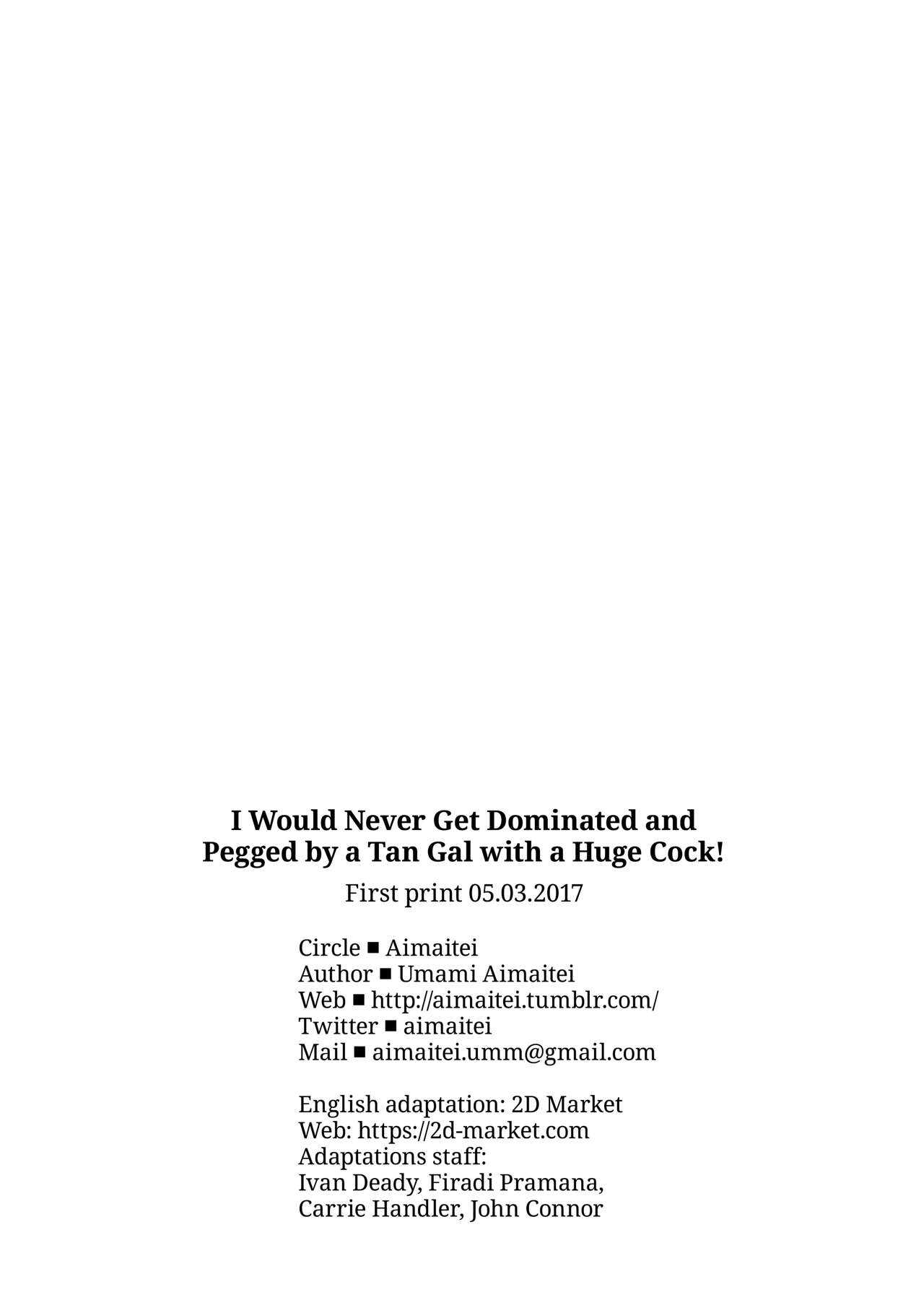[愛昧亭 (愛昧亭うまみ)] ふたなり巨根黒ギャルに 逆アナル服従させられるなんて… [英訳] [無修正] [DL版]Report [Aimaitei (Aimaitei Umami)] Futanari Kyokon Kuro Gal ni Gyaku Anal Fukujuu Saserareru nante... | I Would Never Get Dominated and Pegged by a Tan Gal With a Huge Cock! [English] {2d-market.com} [Decensored] [Digital]