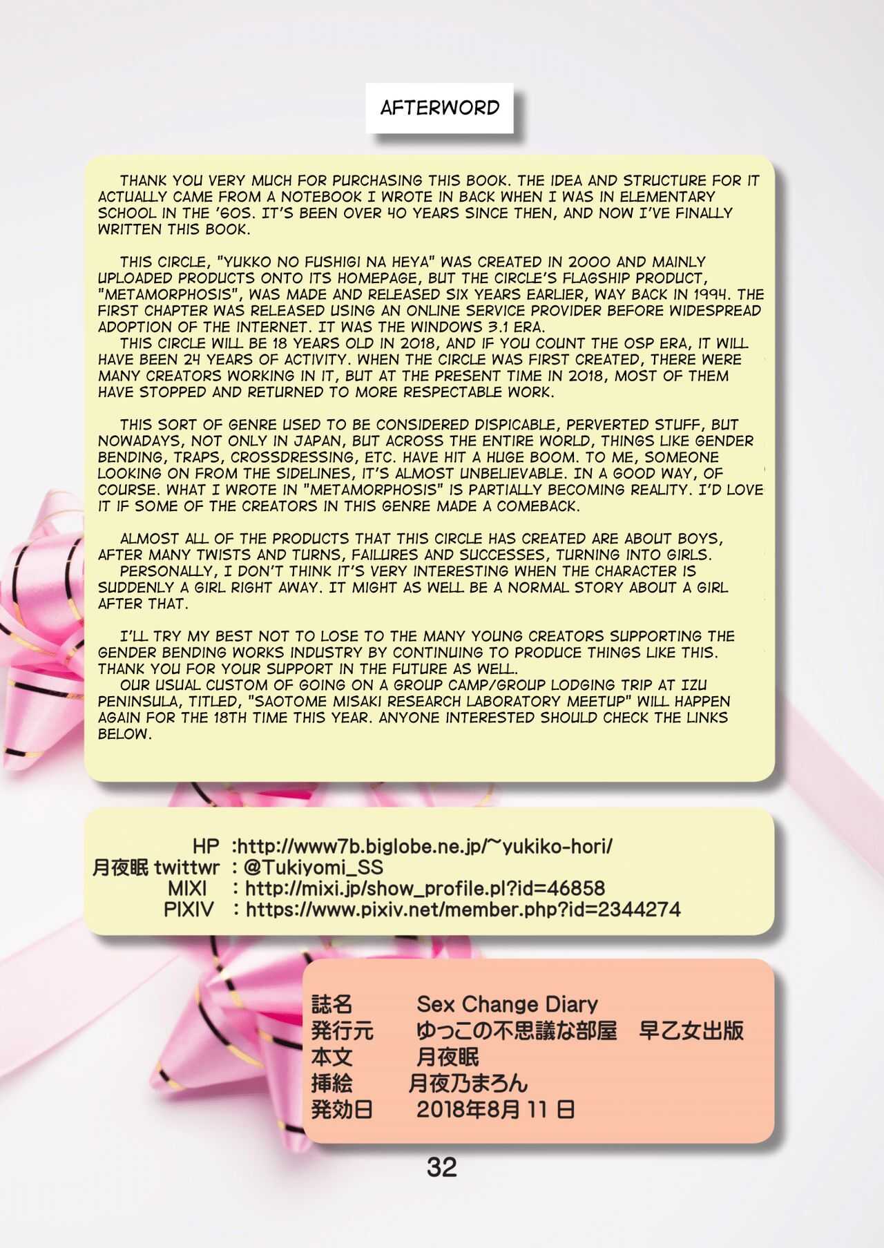 [ゆっこの不思議な部屋 (月夜眠、月夜乃まろん)] Sex Change Diary [英訳] [DL版]Report [Yukko no Fushigi na Heya (Tsukiyomin, Tsukiyono Marron)] SEX CHANGE DIARY [English] [mysterymeat3] [Digital]