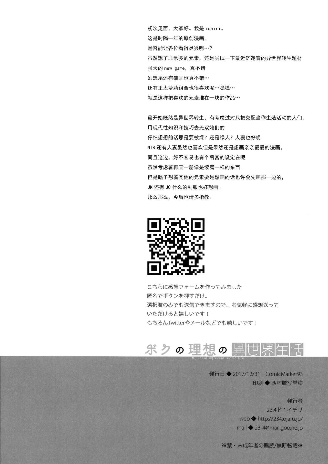 (C93) [23.4ド (イチリ)] ボクの理想の異世界生活 [中国翻訳]Report (C93) [23.4do (Ichiri)] Boku no Risou no Isekai Seikatsu [Chinese] [绅士仓库汉化]