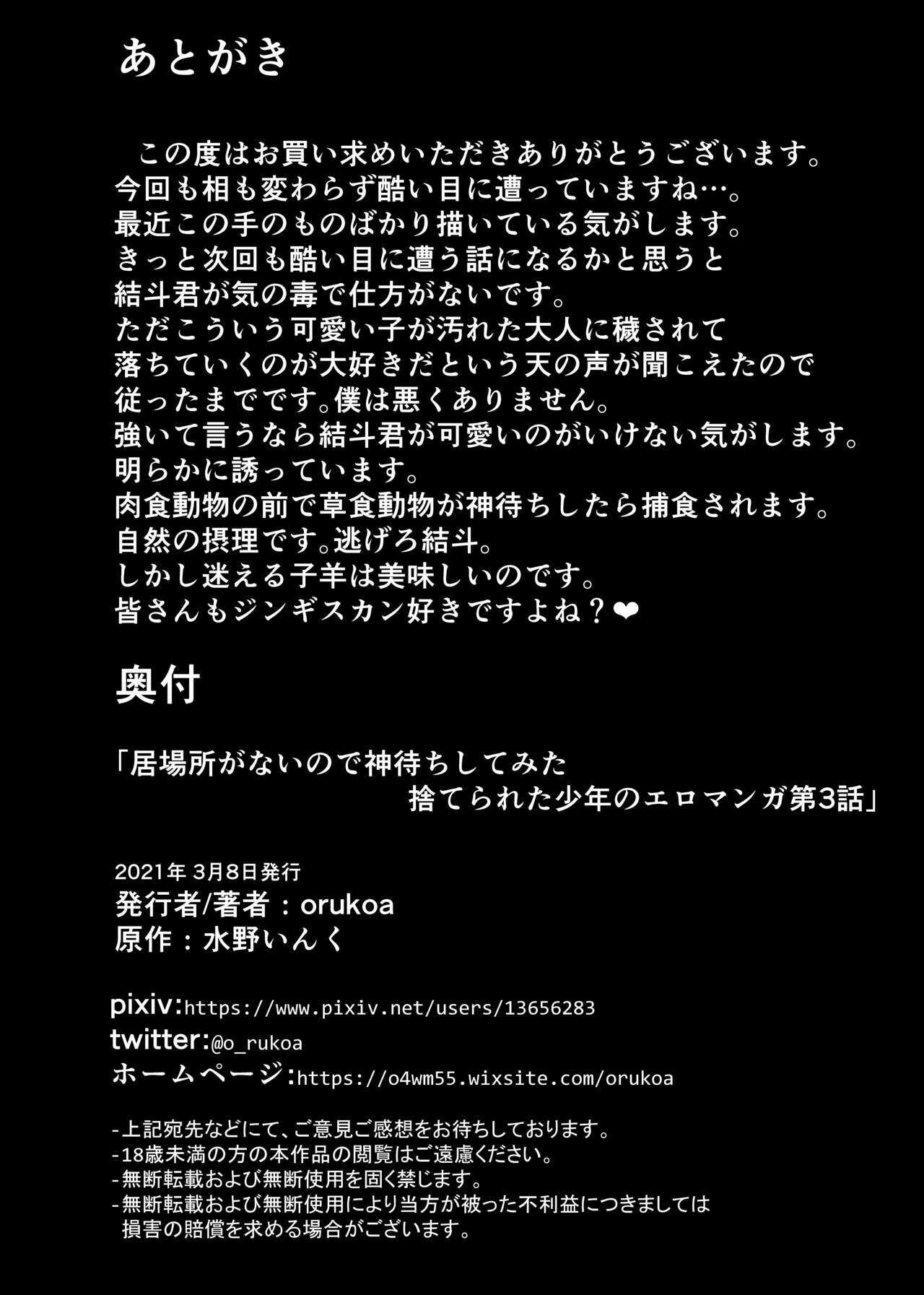 Report [Shota Mangaya-san (orukoa)] Ibasho ga Nainode Kami-machi Shite Mita Suterareta Shounen no Eromanga (Chapter 3)[Digital]