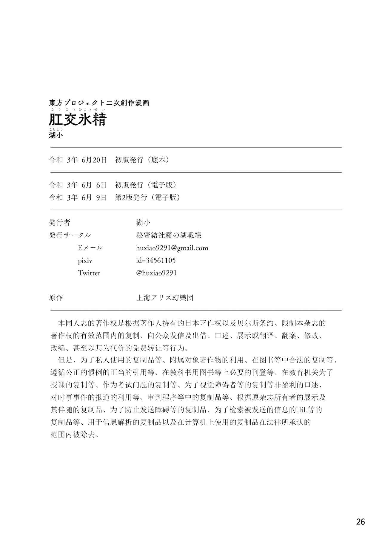 [秘密結社霧の湖戦線 (湖小)] 肛交氷精 (東方Project) [中国翻訳] [DL版]Report [Himitsu Kessha Kiri no Mizuumi Sensen (Huxiao)] Koukou Hyousei (Touhou Project) [Chinese] [白杨汉化组] [Digital]
