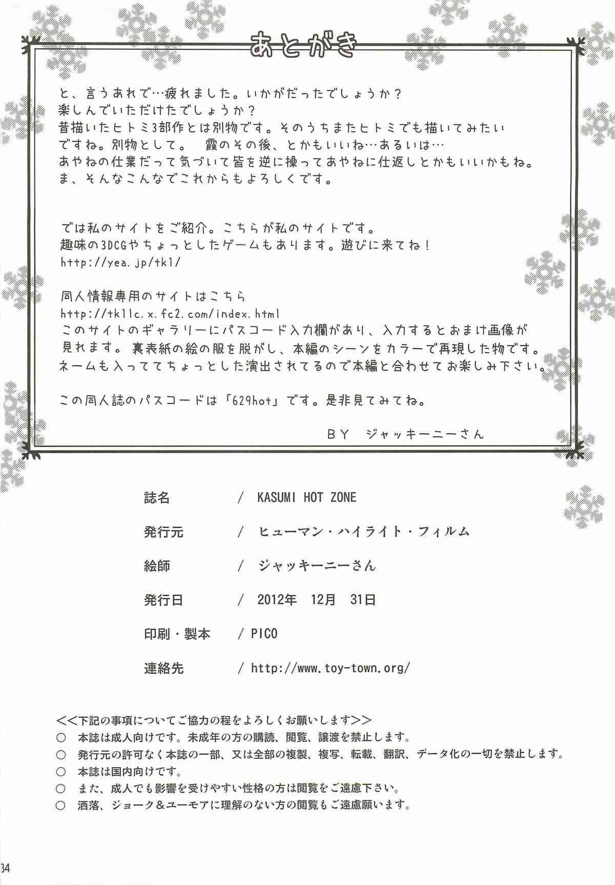 (COMIC1☆7) [ヒューマン・ハイライト・フィルム (ジャッキーニーさん)] KASUMI HOT ZONE (デッド・オア・アライブ)