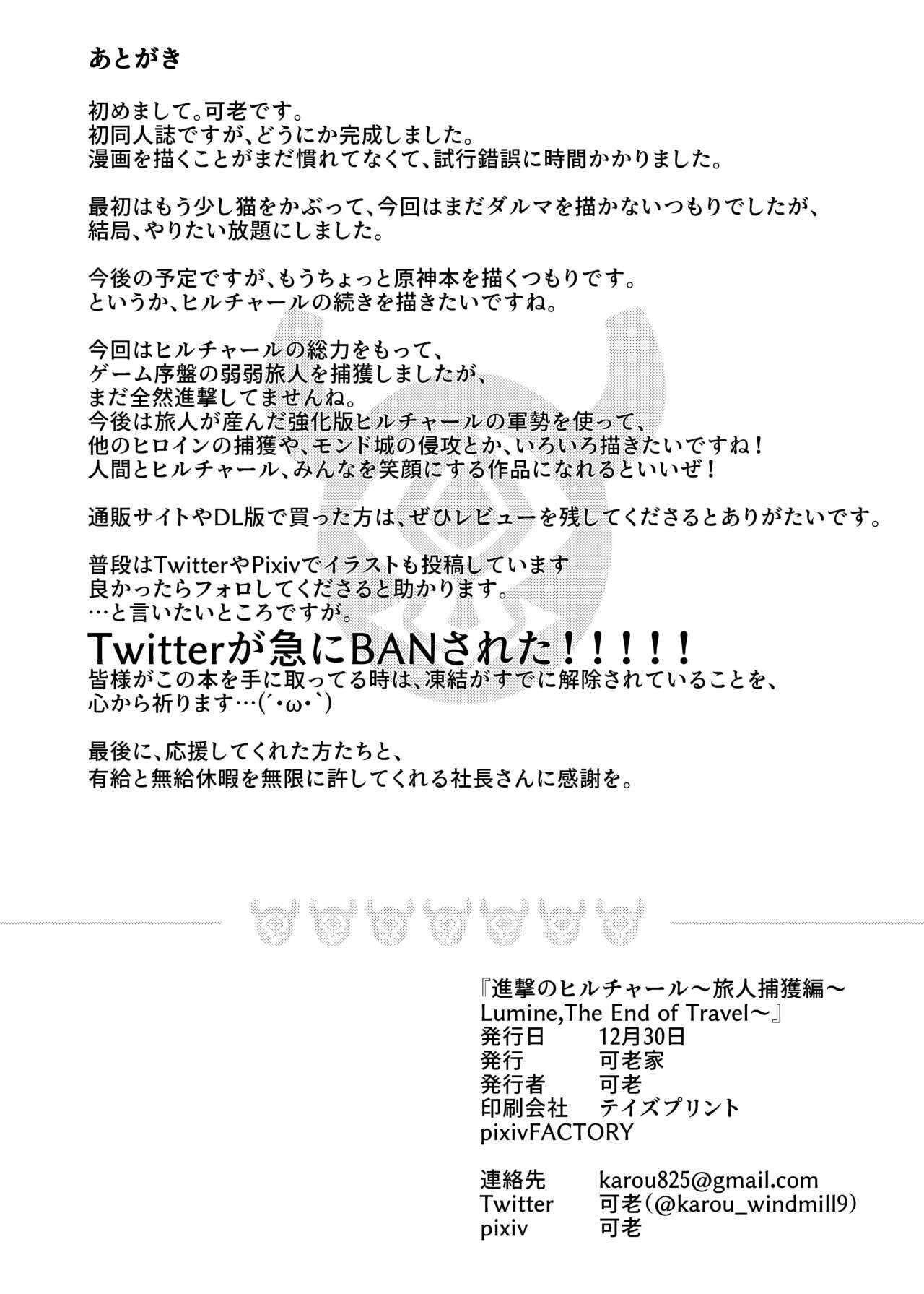 [可老家 (可老)] 進撃のヒルチャール~旅人捕獲編~Lumine,The End of Travel~ (原神) [中国翻訳] [DL版]Report [Karouke (Karou)] Shingeki no Hilichurl ~Tabibito Hokaku Hen~ Lumine, The End of Travel~ (Genshin Impact) [Chinese] [补丁布丁汉化组E] [Digital]