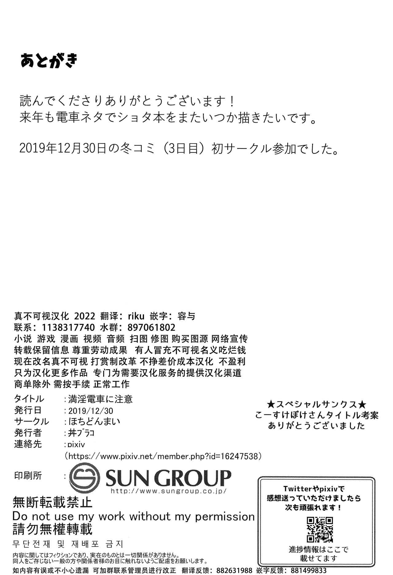 (C97) [ほちどんまい (丼ブラコ)] 満淫電車に注意 [中国翻訳]
