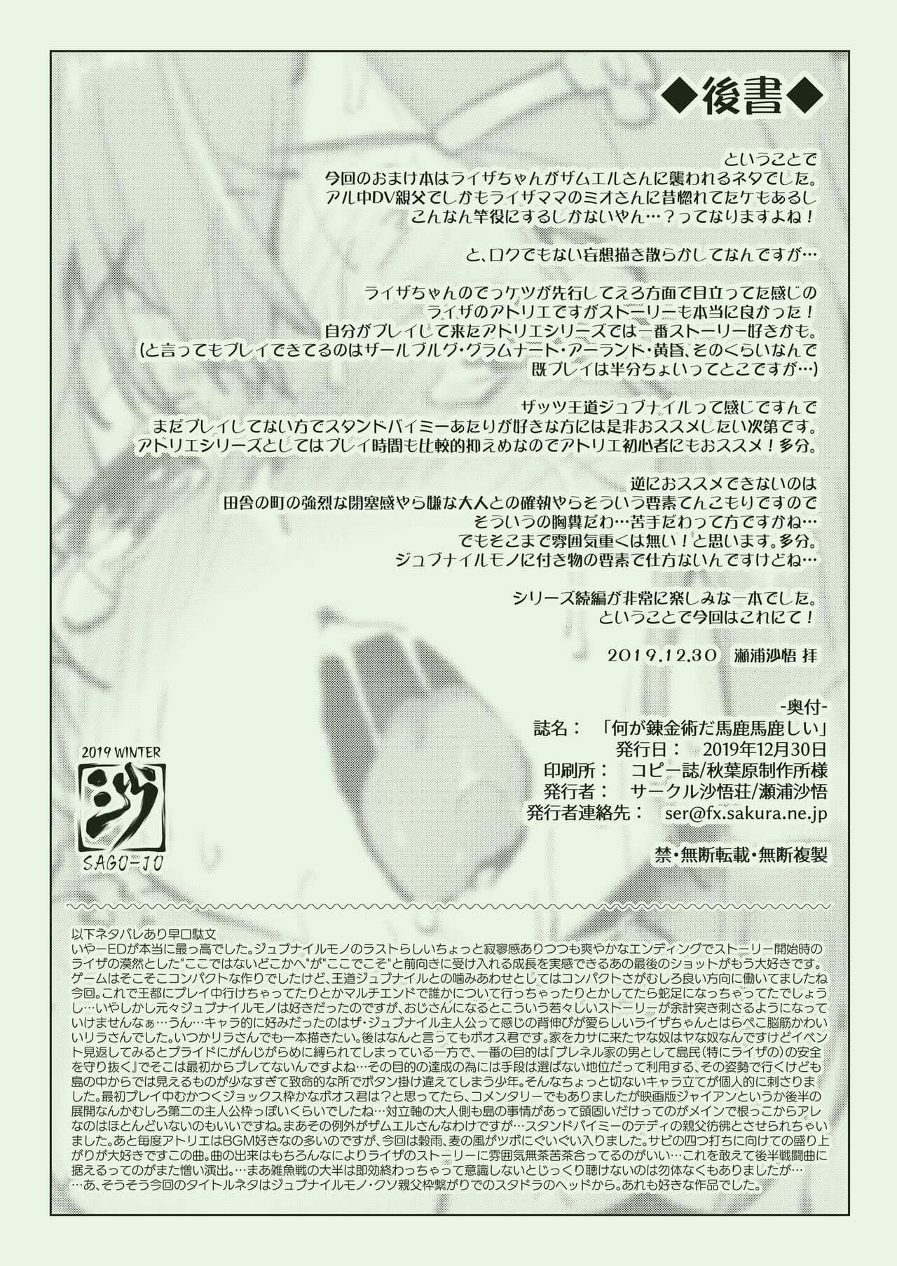 (C97) [沙悟荘 (瀬浦沙悟)] 何が錬金術だ馬鹿馬鹿しい (ライザのアトリエ) [中国翻訳]