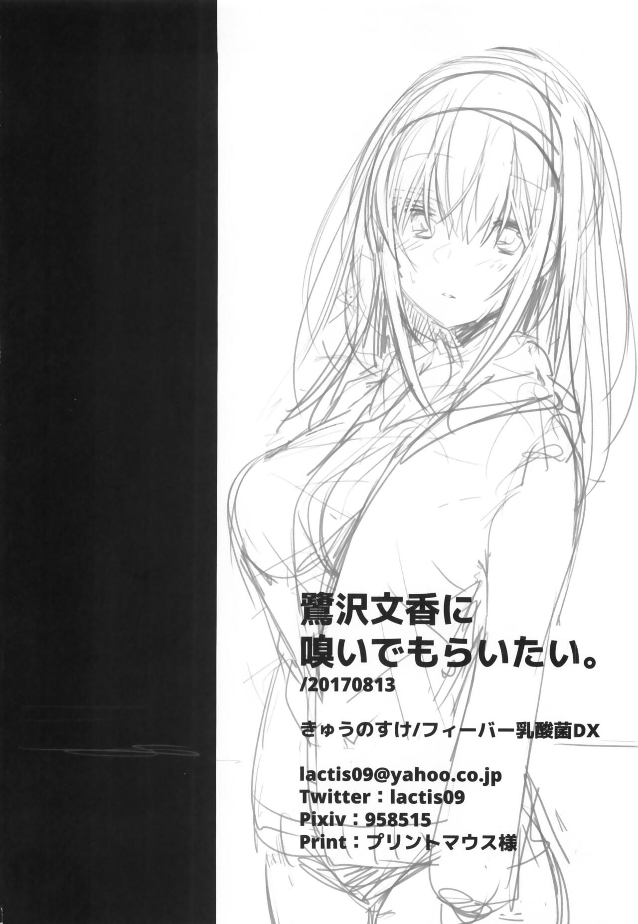 (C92) [フィーバー乳酸菌DX (きゅうのすけ)] 鷺沢文香に嗅いでもらいたい。 (アイドルマスター シンデレラガールズ)Report (C92) [Fever Lactic Acid Bacteria Deluxe (Kyuunosuke)] Sagisawa Fumika ni Kaguidemoraitai. (THE IDOLM@STER CINDERELLA GIRLS)