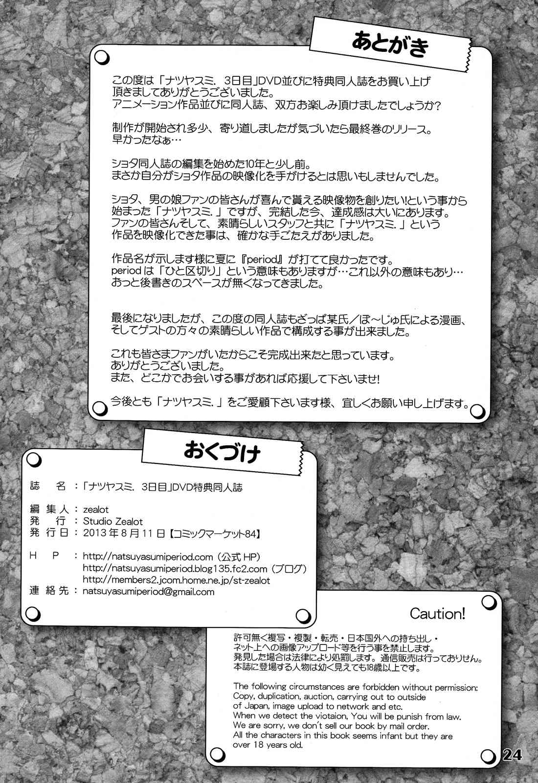 (C84) [Studio Zealot (よろず)] ナツヤスミ. 3日目 DVD特典同人誌Report Studio Zealot - Natsuyasumi Haru no Hi