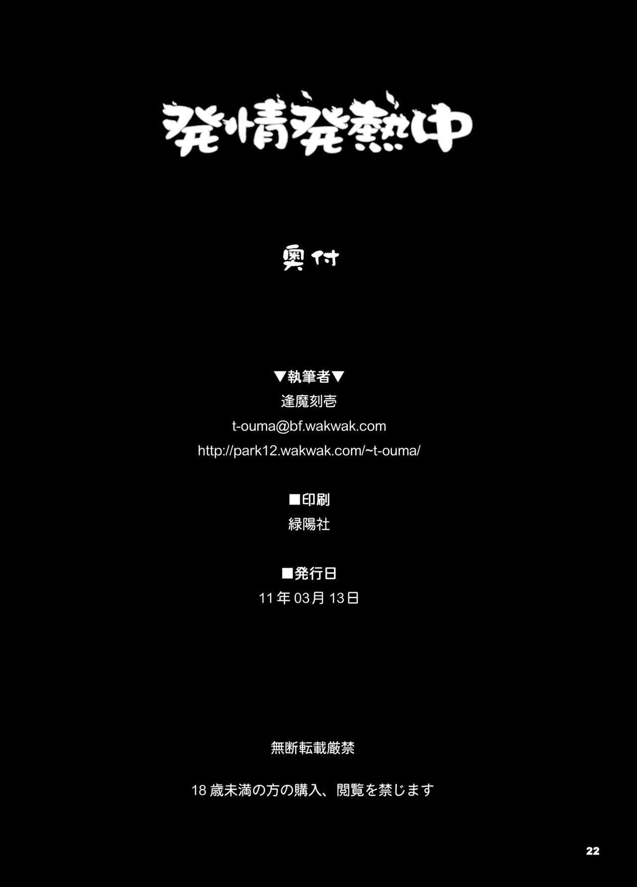 [しもやけ堂 (逢魔刻壱)] 発情発熱中 (東方Project) [DL版]Report [Shimoyakedou (Ouma Tokiichi)] Hatsujou Hatsune Tsuchuu (Touhou Project) [Digital]