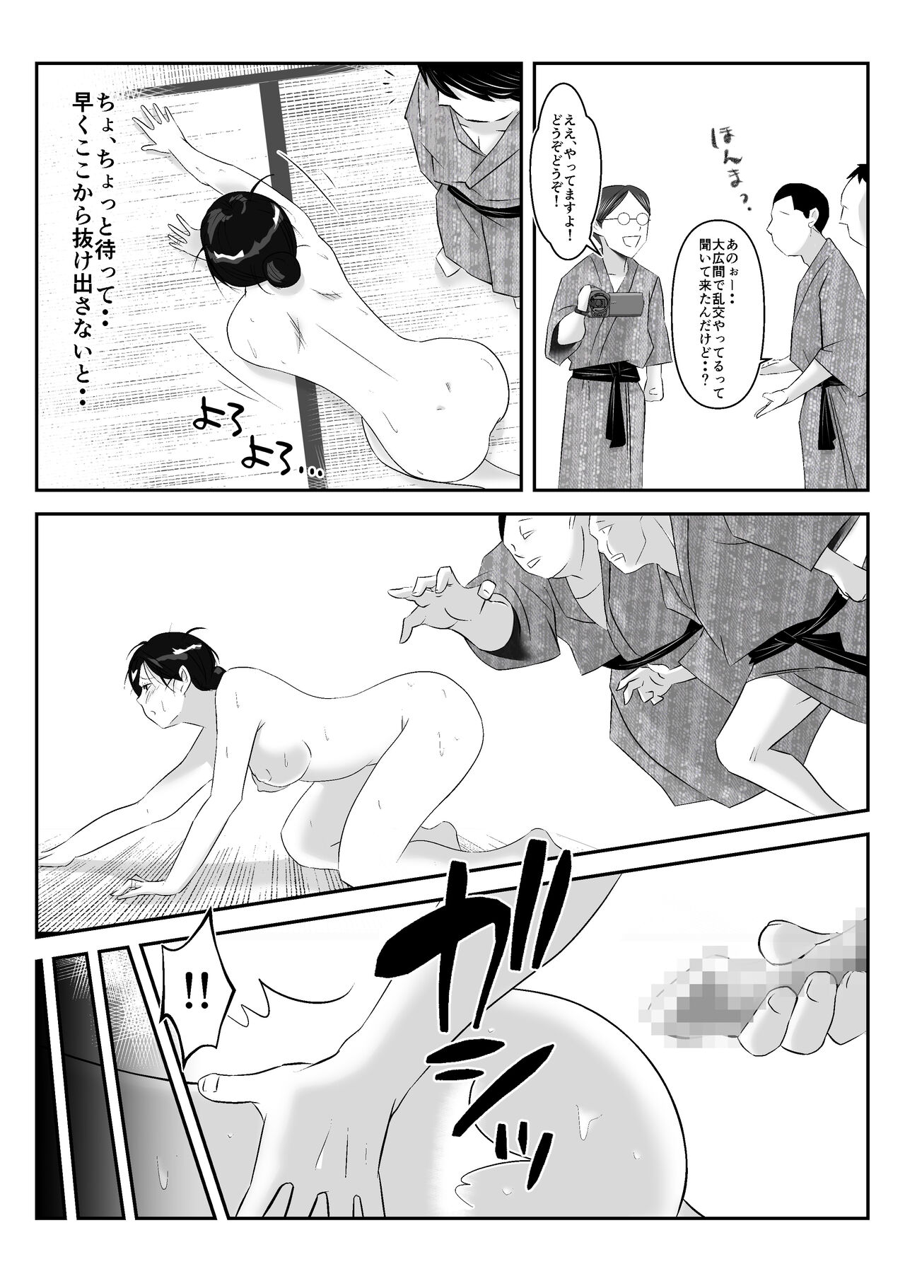 [みとれいゆ] 旦那との旅先で、大学の同人AVサークルの乱交撮影に巻き込まれて、学生や居合わせた宿泊客のおじさん達にヤられちゃった話Report [Mitoreiyu] Danna to no Tabisaki de, Daigaku no Doujin AV Circle no Rankou Satsuei ni Makikomarete, Gakusei ya Iawaseta Shukuhakukyaku no Ojisan-tachi ni Yararechatta Hanashi