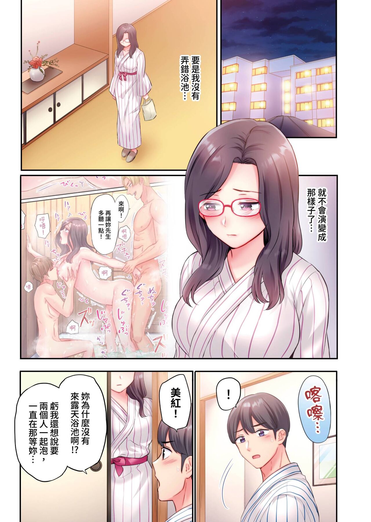 [七色風香] チャラ男達にナンパ→即ハメかまされた地味妻~夫の隣で寝取られ3P温泉旅行~ [中国翻訳]Report [Nanashiki Fuka] Charao-tachi ni Nanpa→Soku Hame Kamasareta Jimi Tsuma ~Otto no Tonari de Netorare 3p Onsen Ryoko~ | 被輕浮的男人們搭訕→立即被插入的不起眼人妻~在老公身邊被NTR的3P溫泉旅行~ [Chinese]