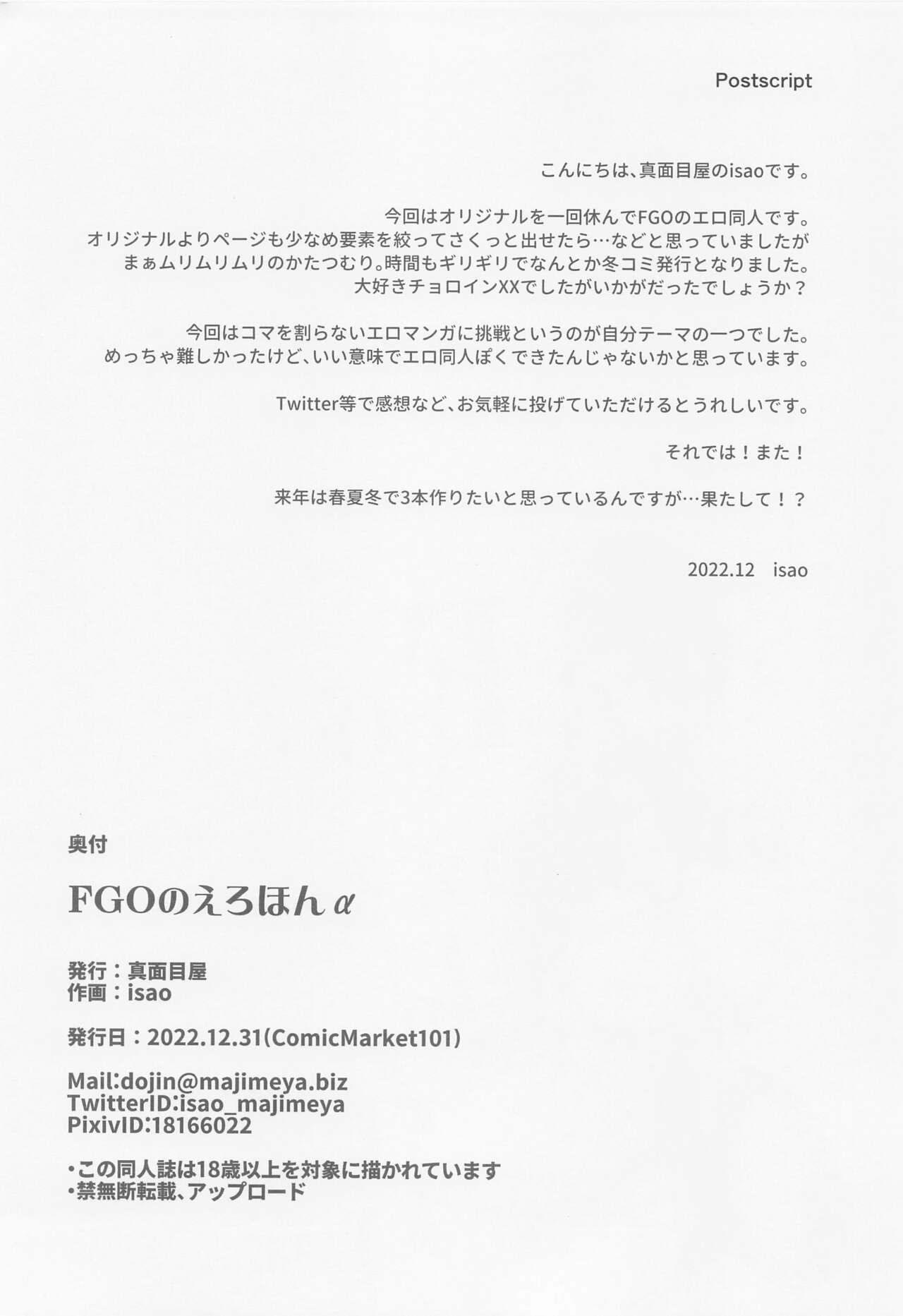 (C101) [真面目屋 (isao)] FGOのえろほんα (Fate/Grand Order)Report (C101) [Majimeya (isao)] FGO no Ero Hon α (Fate/Grand Order)