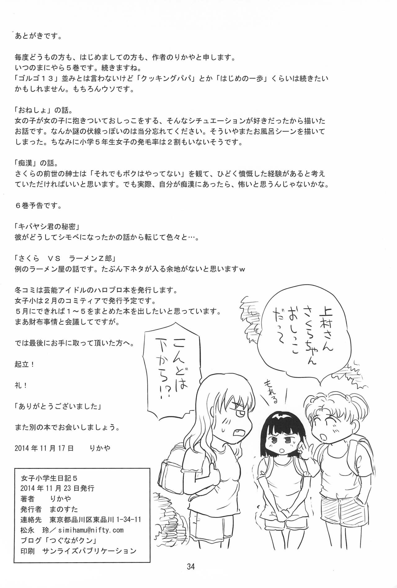 (コミティア110) [まのすた (りかや)] 女子小学生日記5Report (COMITIA110) [Manosta (Rikaya)] Joshi Shougakusei Nikki 5