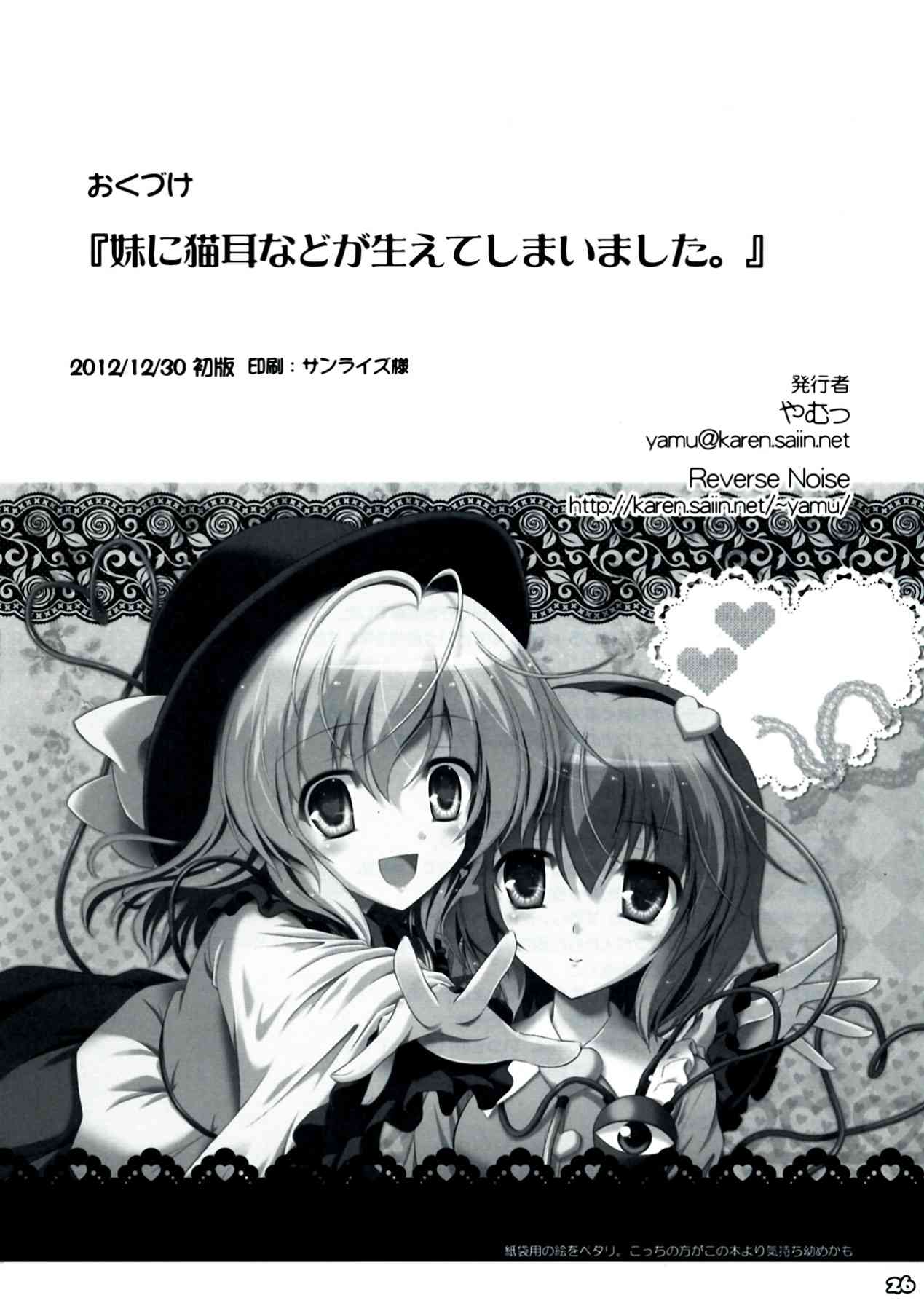 (C83) [Reverse Noise (やむっ)] 妹に猫耳などが生えてしまいました。 (東方Project)Report (C83) [ReverseNoise (Yamu)] Imouto ni Nekomimi Nadoga hae Teshi Maimashita.